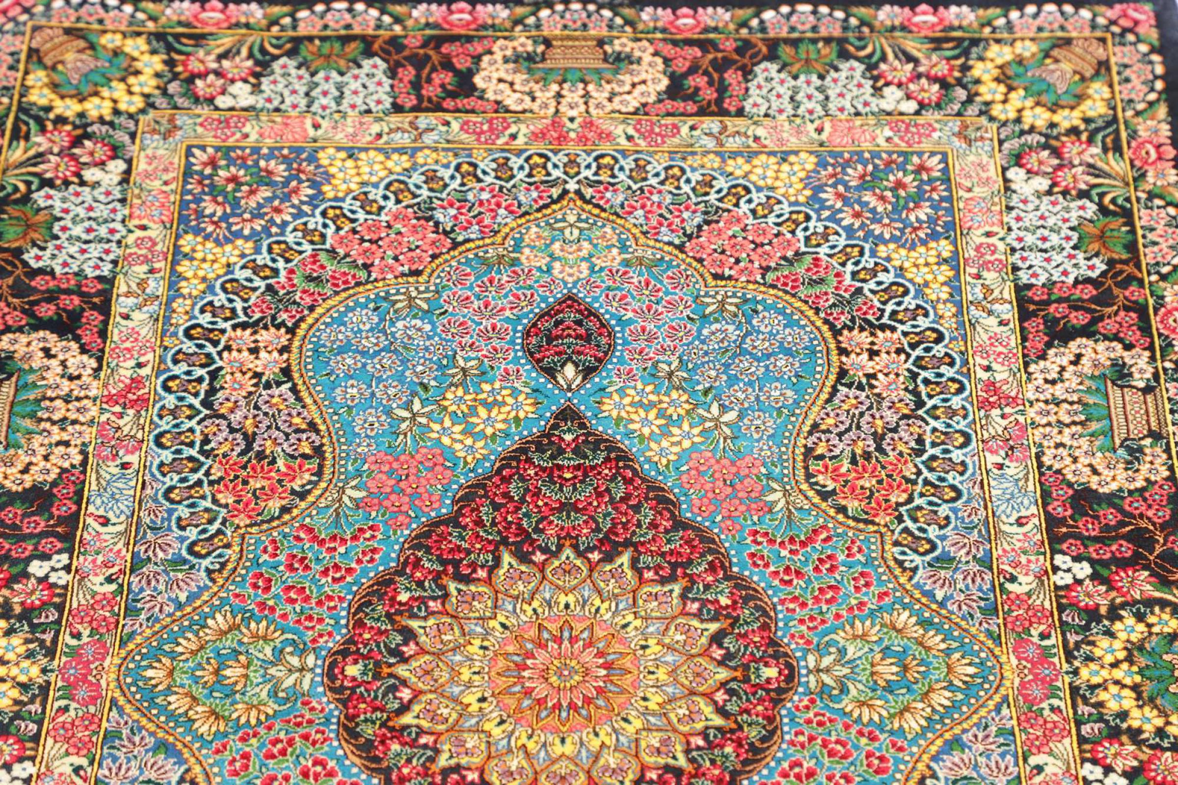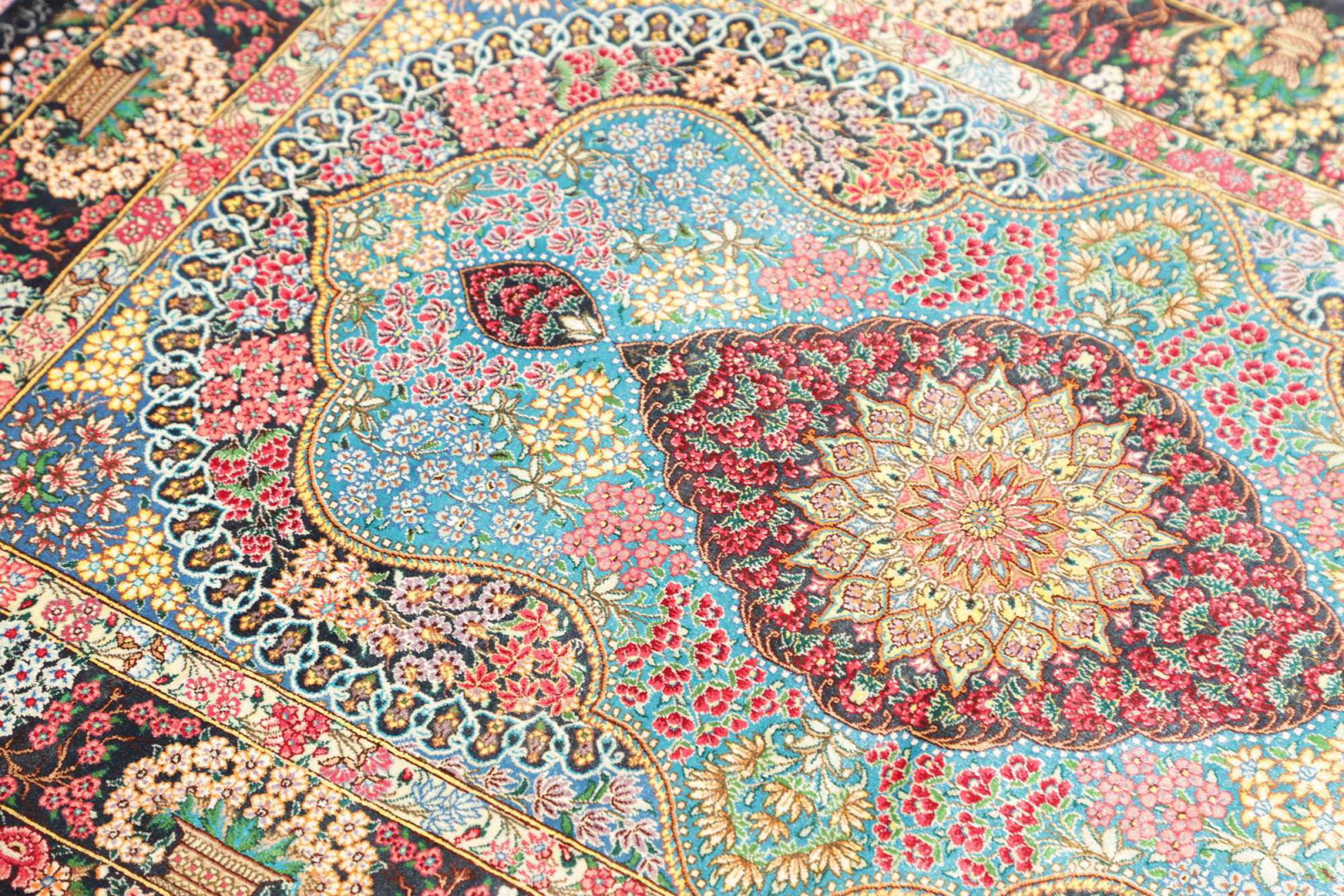 Dette Qum silketæppe er den rene luksus. Mønster og naturlige silke taler for sig selv. Orienten i perfektion til dit hjem. En silke tæppe fra Ghom opfylder endda ønsker fra elskere af den persisk tæppe kunst. Denne persisk tæppe er en blikfang og vil blive vist i ny pragt "hans" værelse.