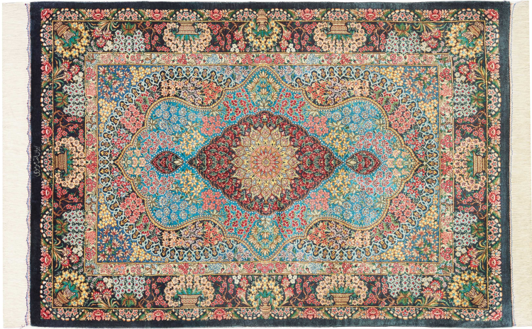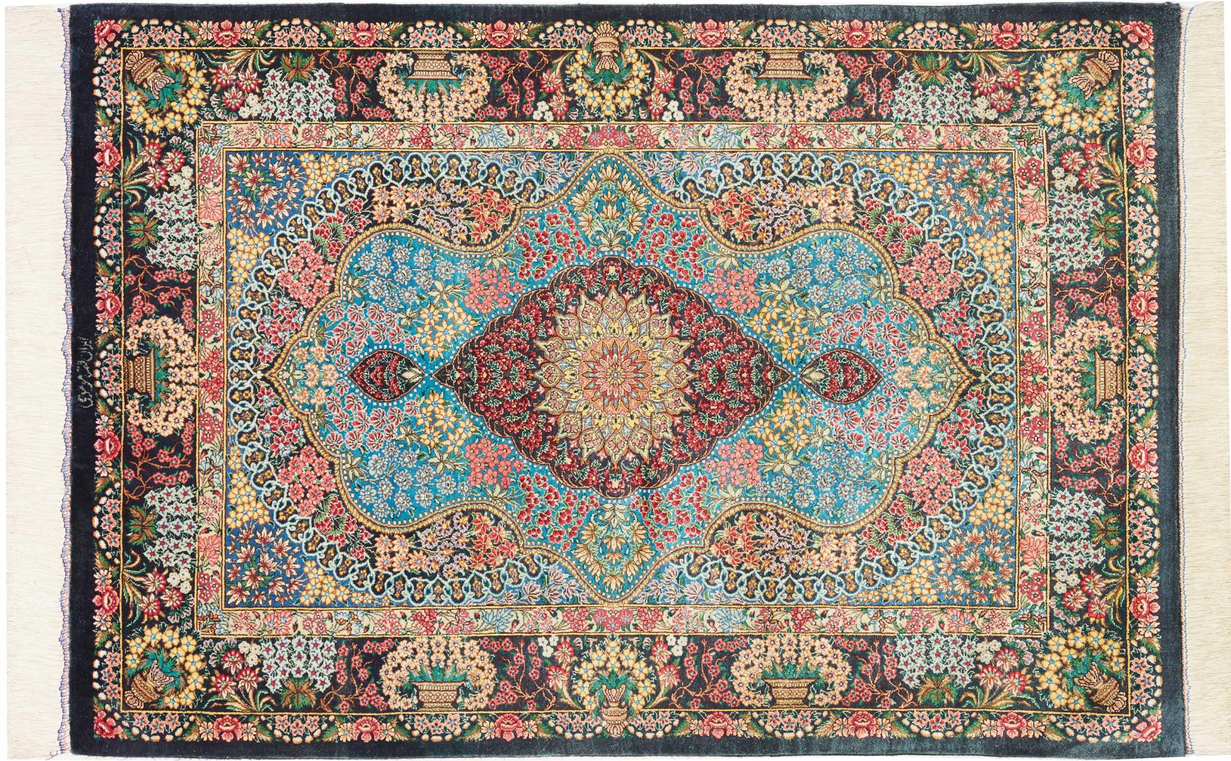 Tæppe-nr.: 249144007482489 Størrelse: 118x79 cm Tykkelse: ca. 3 mm Knuder: 900 000 / m² Forarbejdelse: Knyttet i hånden Luv: Silke Kæde: Silke Oprindelse: Persien / Iran Alder: Ny Vægt: ca. 2 kg Antal på lager: Unik - Kun 1 tilbage på lager