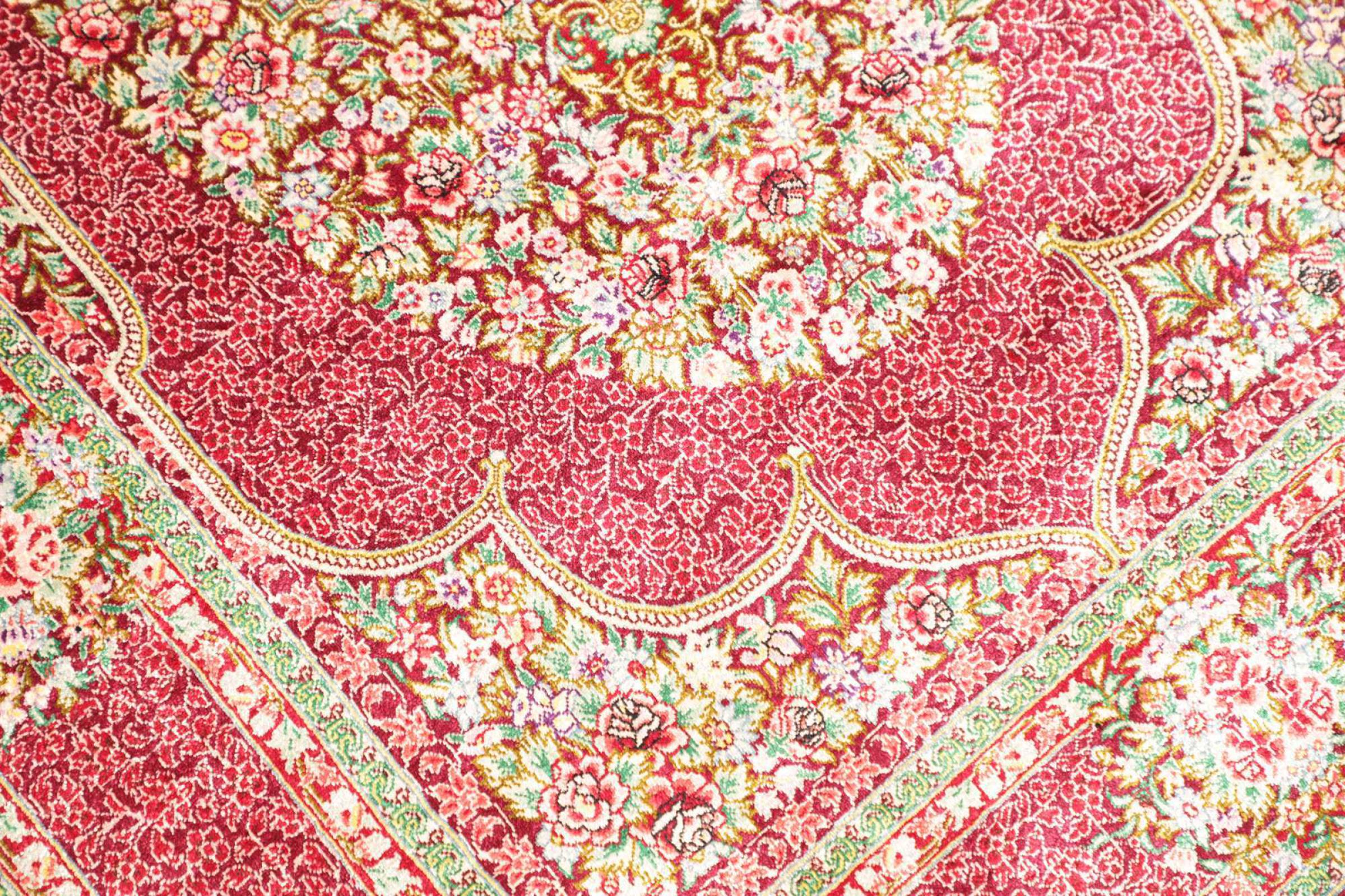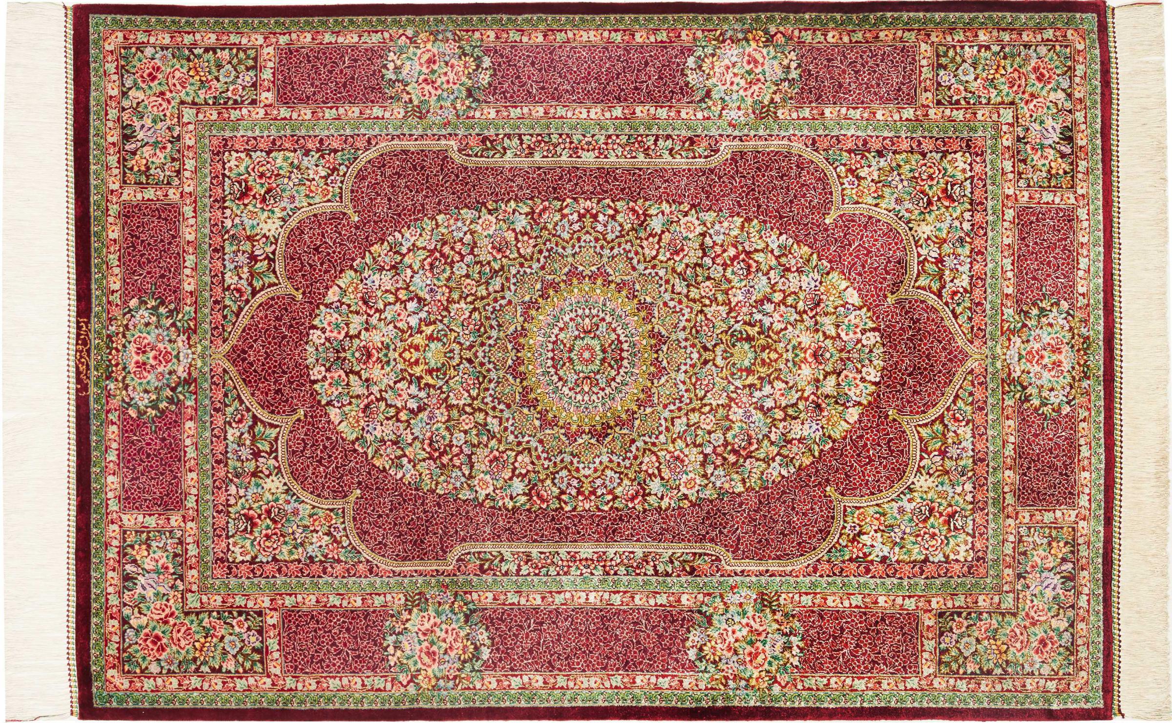 Dette Qum silketæppe er den rene luksus. Mønster og naturlige silke taler for sig selv. Orienten i perfektion til dit hjem. En silke tæppe fra Ghom opfylder endda ønsker fra elskere af den persisk tæppe kunst. Denne persisk tæppe er en blikfang og vil blive vist i ny pragt "hans" værelse.