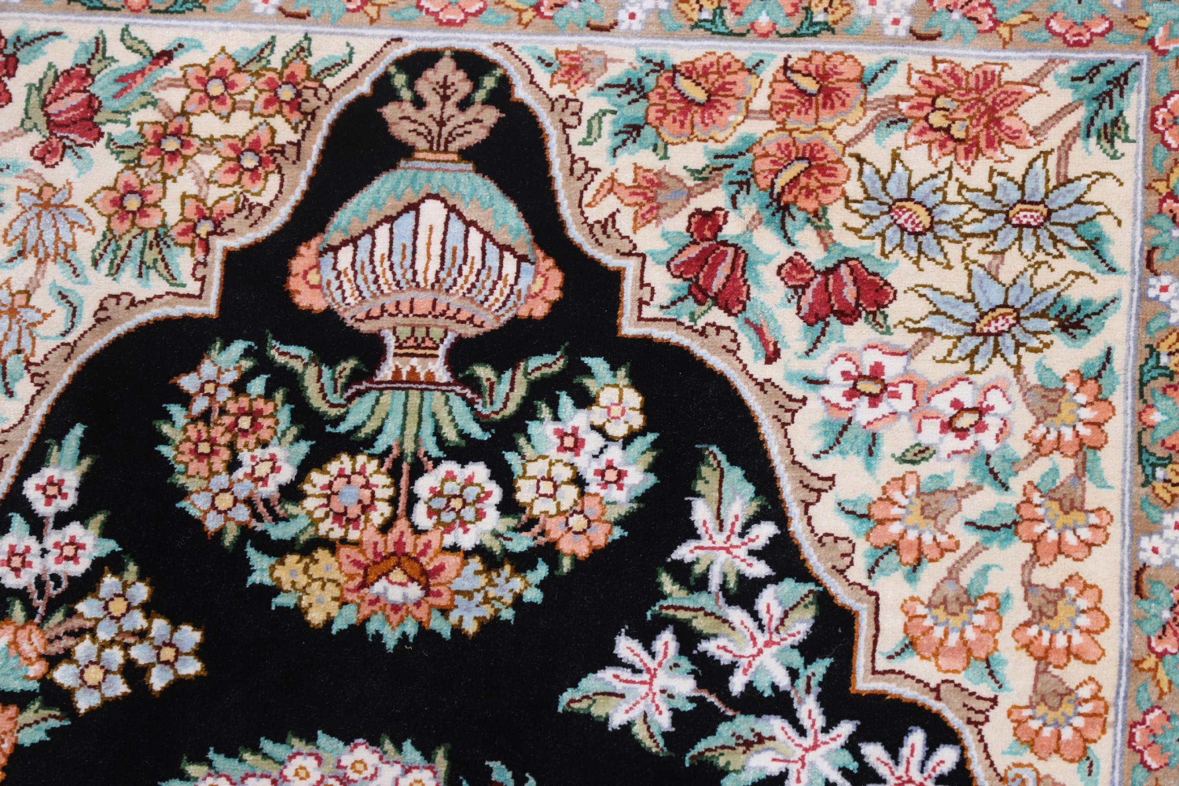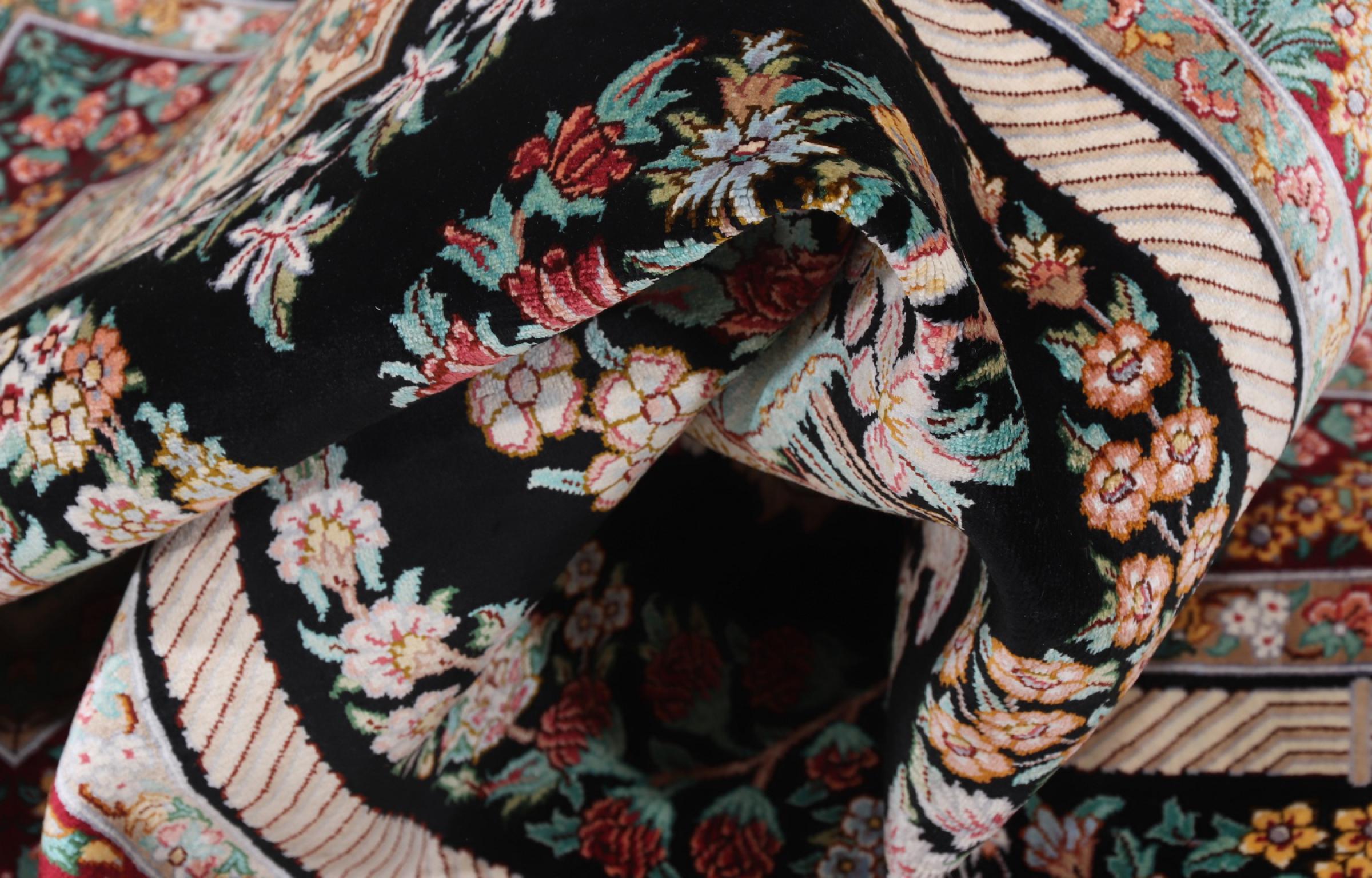 Dette Qum silketæppe er den rene luksus. Mønster og naturlige silke taler for sig selv. Orienten i perfektion til dit hjem. En silke tæppe fra Ghom opfylder endda ønsker fra elskere af den persisk tæppe kunst. Denne persisk tæppe er en blikfang og vil blive vist i ny pragt "hans" værelse.