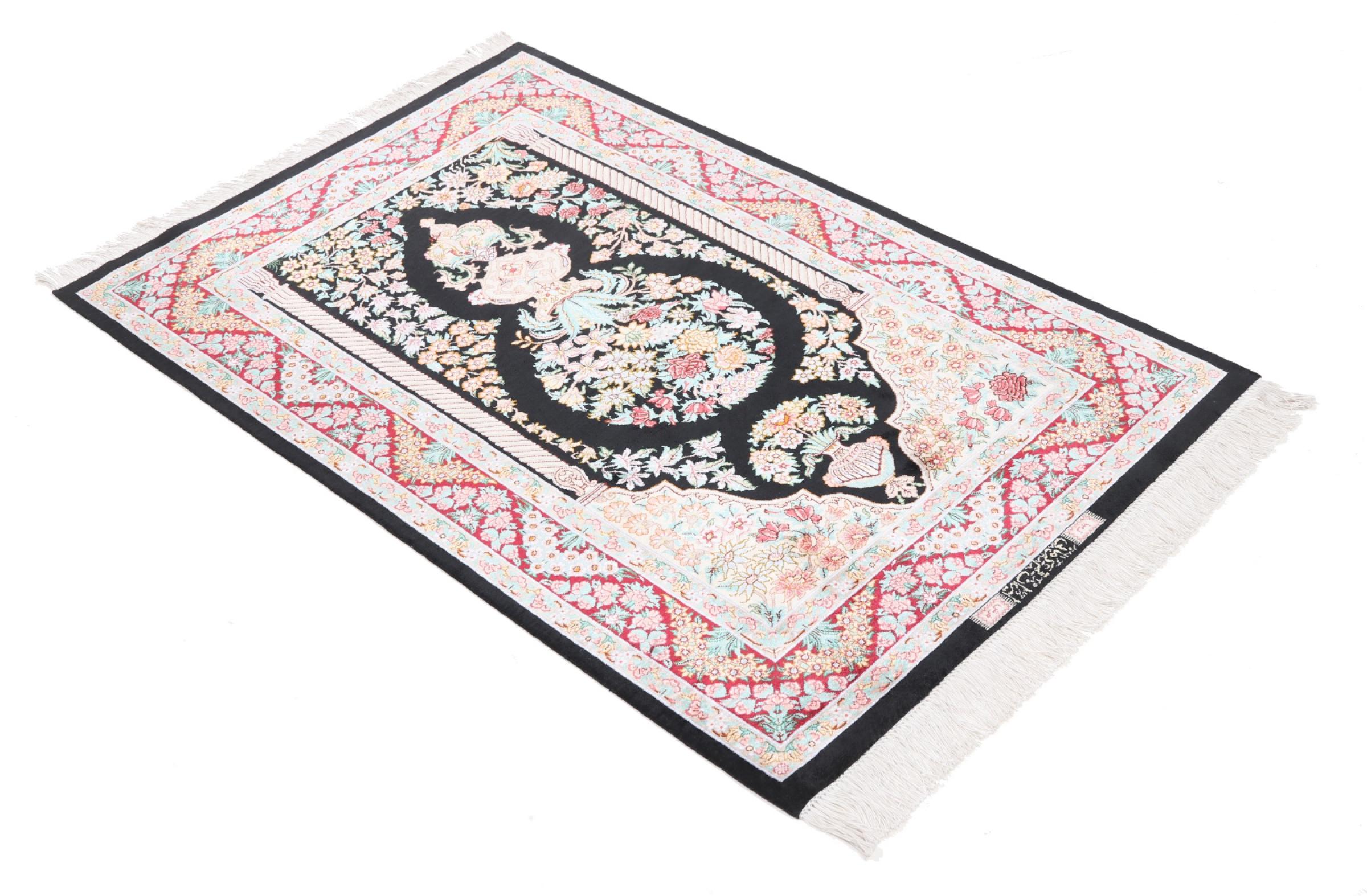 Tæppe-nr.: 3499500610440 Størrelse: 119x81 cm Tykkelse: ca. 3 mm Knuder: 1 000 000 / m² Forarbejdelse: Knyttet i hånden Luv: Silke Kæde: Silke Oprindelse: Persien / Iran Alder: Ny Vægt: ca. 2 kg Antal på lager: Unik - Kun 1 tilbage på lager