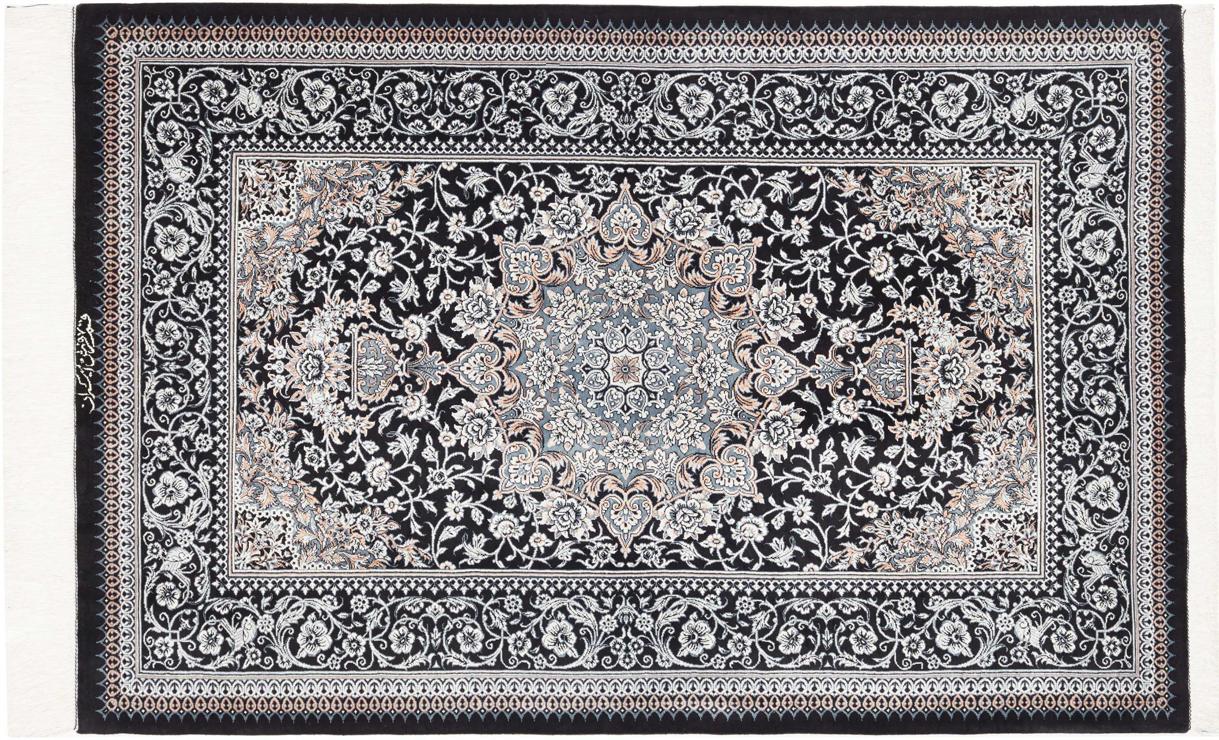 Tæppe-nr.: 247137009070623 Størrelse: 120x79 cm Tykkelse: ca. 3 mm Knuder: 1 000 000 / m² Forarbejdelse: Knyttet i hånden Luv: Silke Kæde: Silke Oprindelse: Persien / Iran Alder: Ny Vægt: ca. 2 kg Antal på lager: Unik - Kun 1 tilbage på lager
