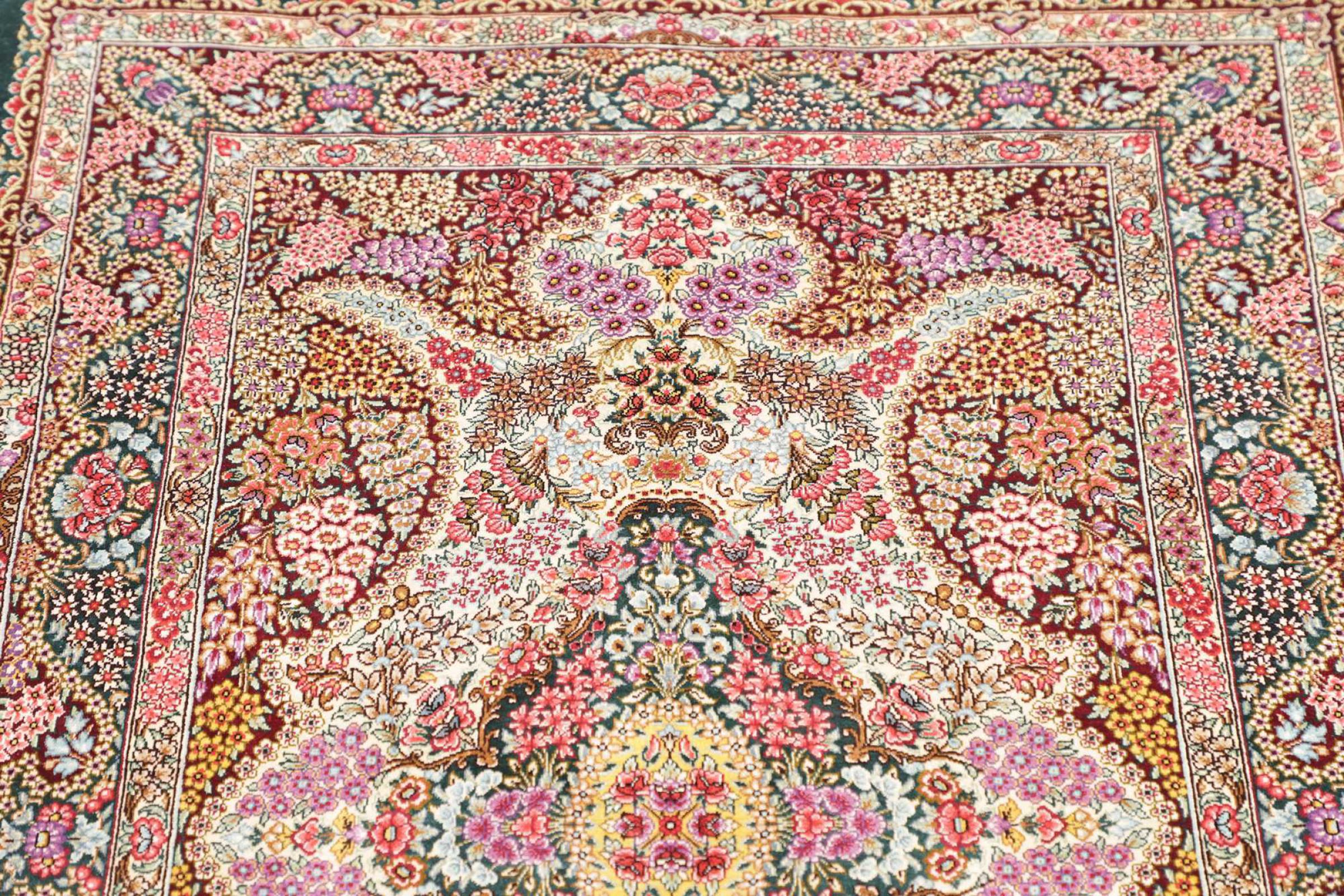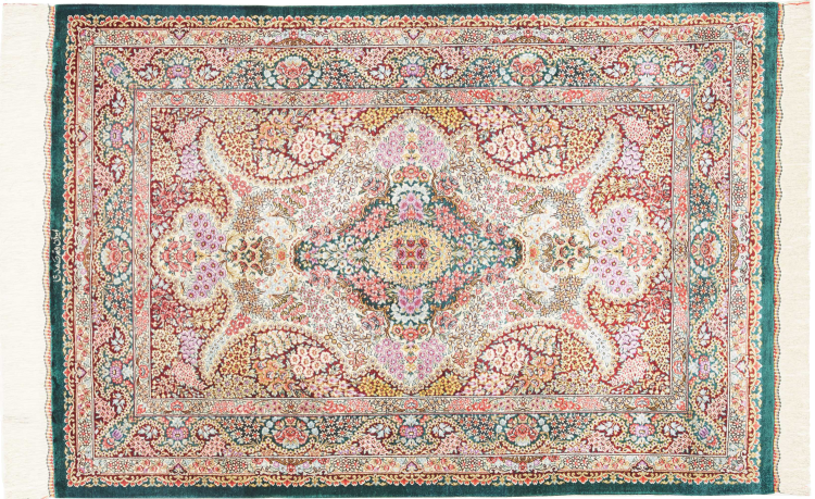 Tæppe-nr.: 247301005940620 Størrelse: 120x79 cm Tykkelse: ca. 3 mm Knuder: 1 000 000 / m² Forarbejdelse: Knyttet i hånden Luv: Silke Kæde: Silke Oprindelse: Persien / Iran Alder: Ny Vægt: ca. 2 kg Antal på lager: Unik - Kun 1 tilbage på lager