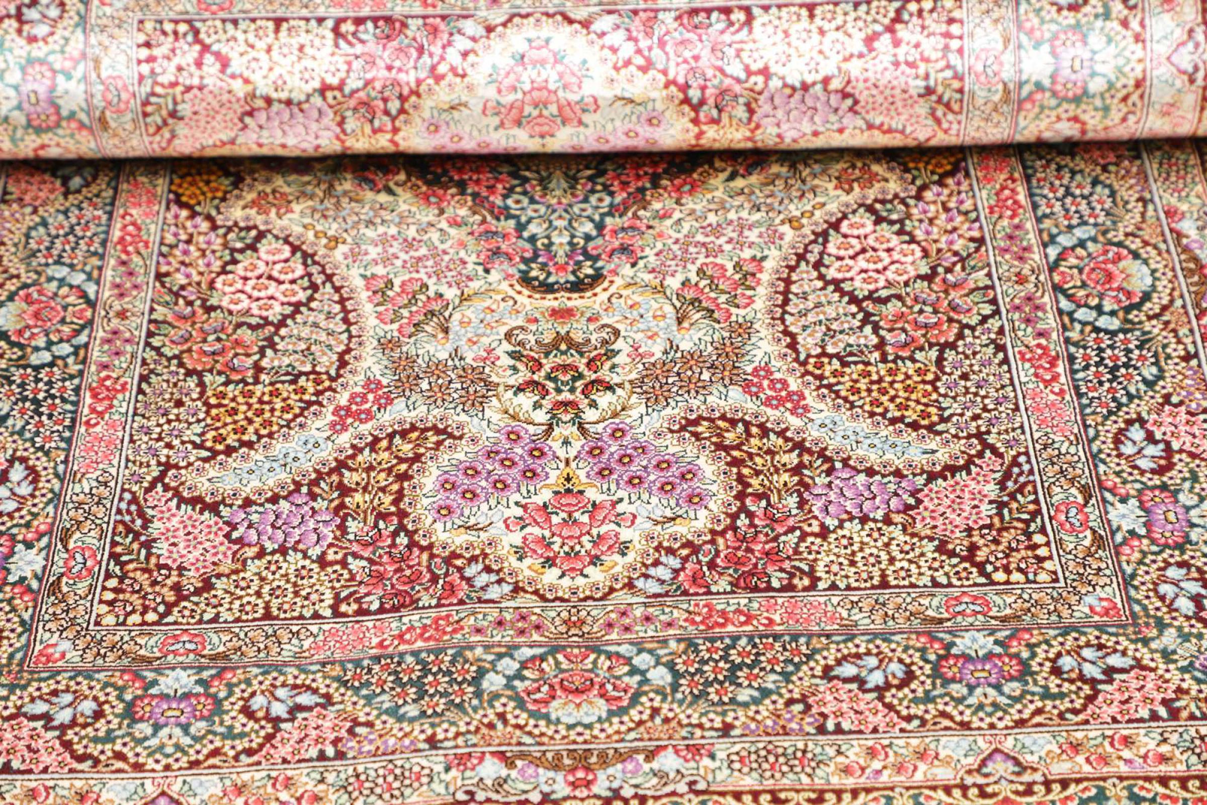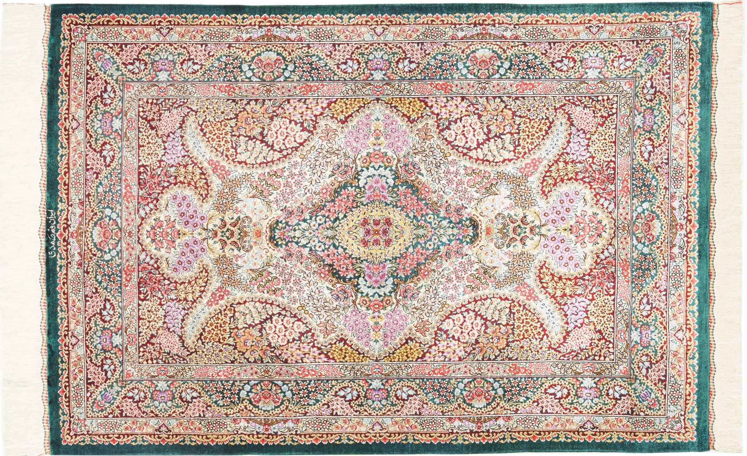 Dette Qum silketæppe er den rene luksus. Mønster og naturlige silke taler for sig selv. Orienten i perfektion til dit hjem. En silke tæppe fra Ghom opfylder endda ønsker fra elskere af den persisk tæppe kunst. Denne persisk tæppe er en blikfang og vil blive vist i ny pragt "hans" værelse.