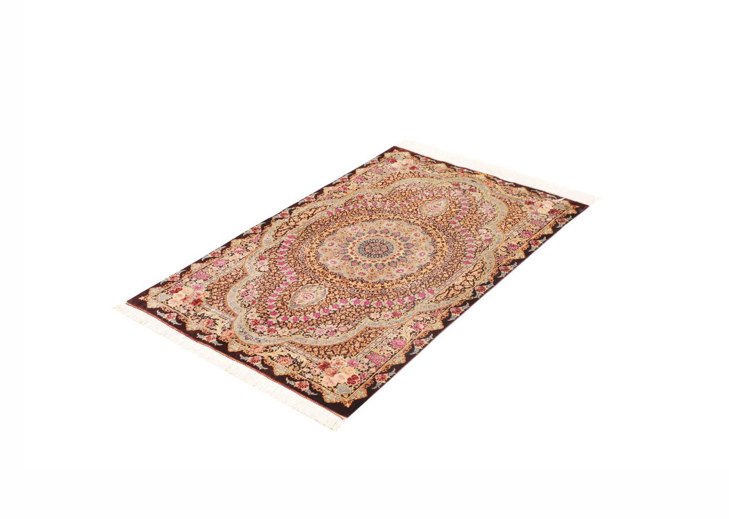 Tæppe-nr.: 247195001516618 Størrelse: 120x80 cm Tykkelse: ca. 3 mm Knuder: 1 000 000 / m² Forarbejdelse: Knyttet i hånden Luv: Silke Kæde: Silke Oprindelse: Persien / Iran Alder: Ny Vægt: ca. 2 kg Antal på lager: Unik - Kun 1 tilbage på lager