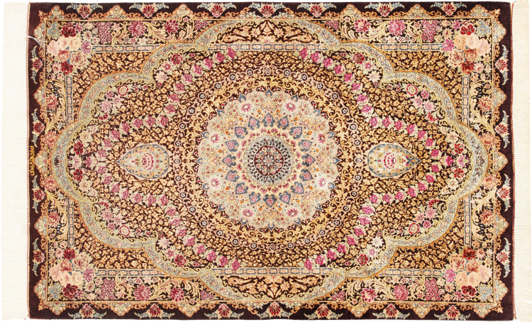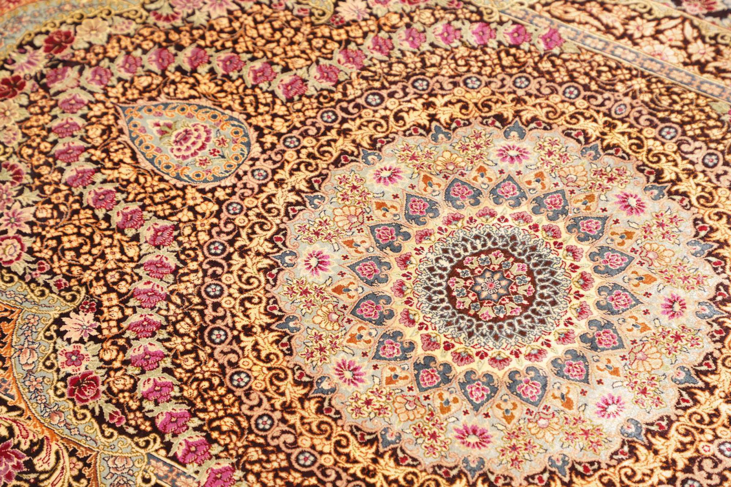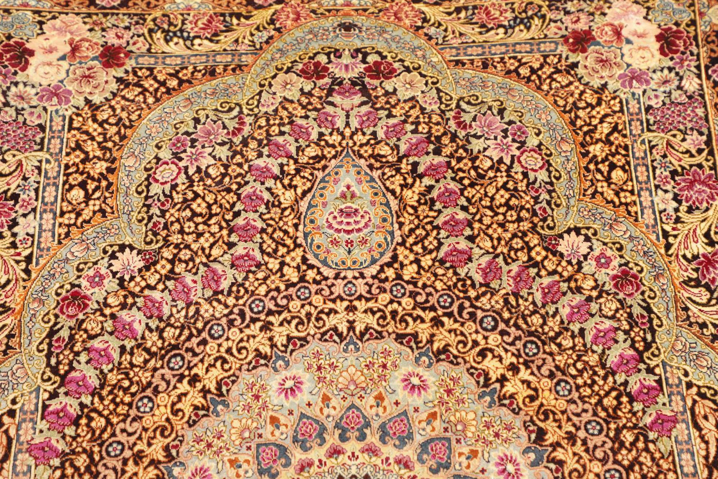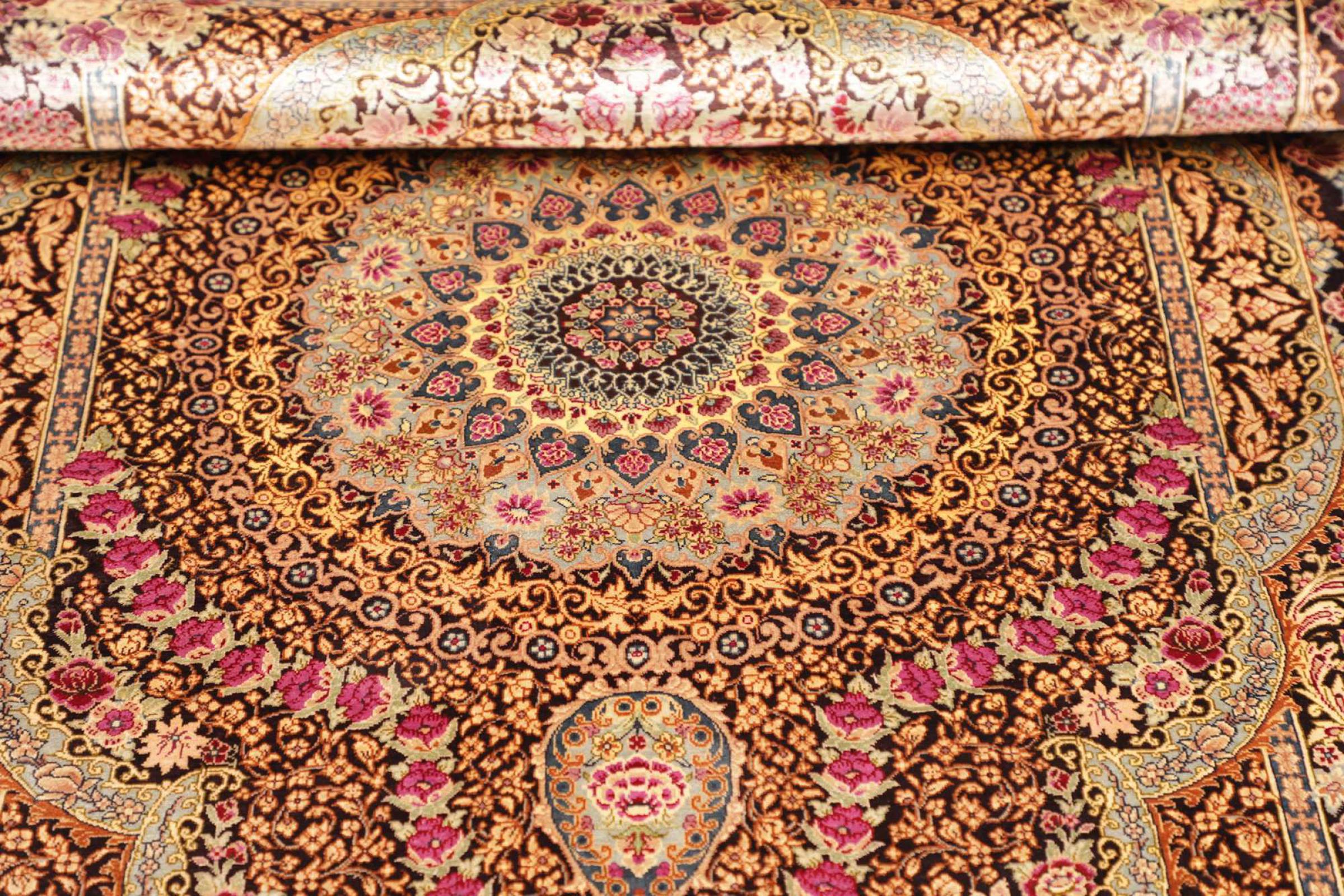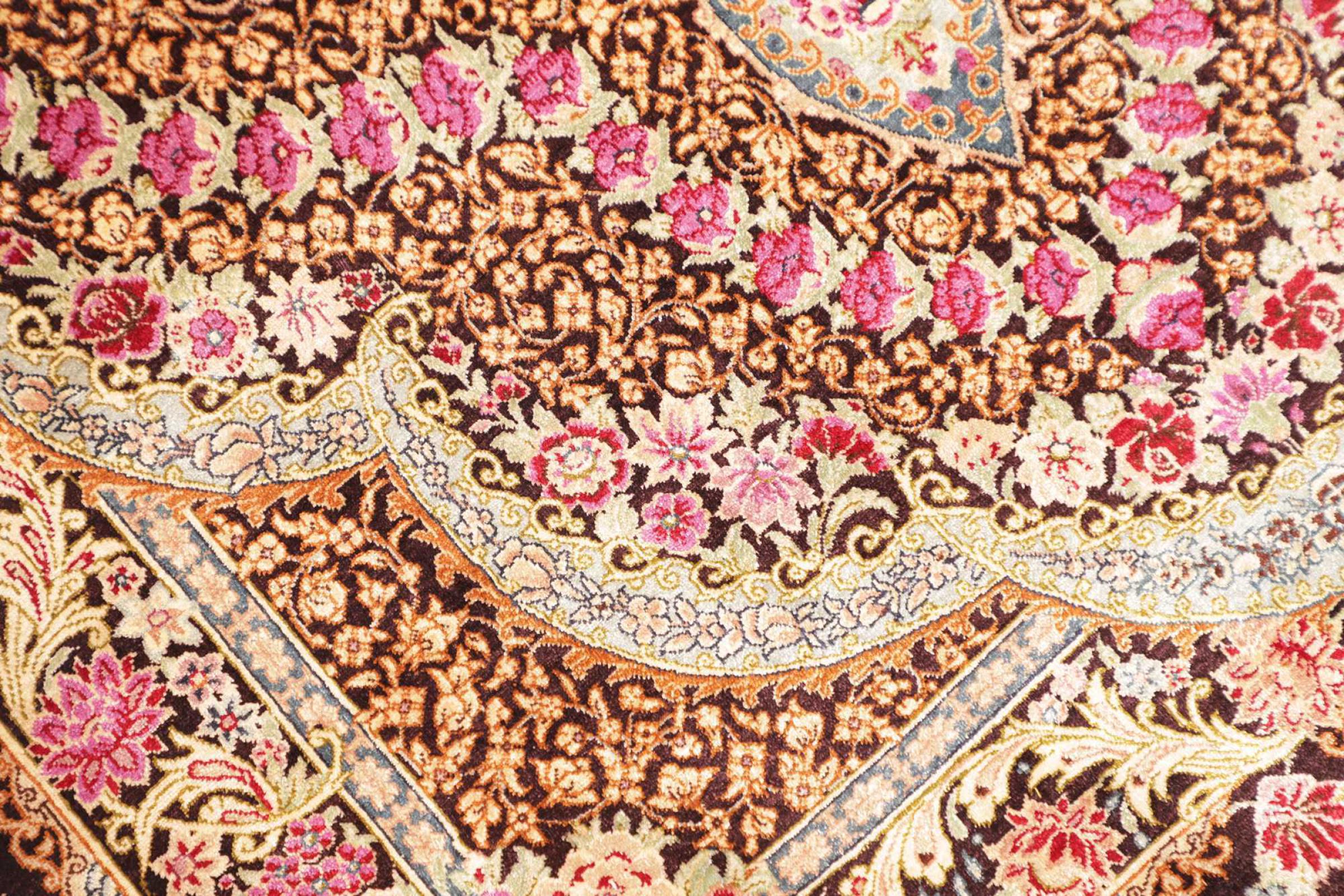 Dette Qum silketæppe er den rene luksus. Mønster og naturlige silke taler for sig selv. Orienten i perfektion til dit hjem. En silke tæppe fra Ghom opfylder endda ønsker fra elskere af den persisk tæppe kunst. Denne persisk tæppe er en blikfang og vil blive vist i ny pragt "hans" værelse.