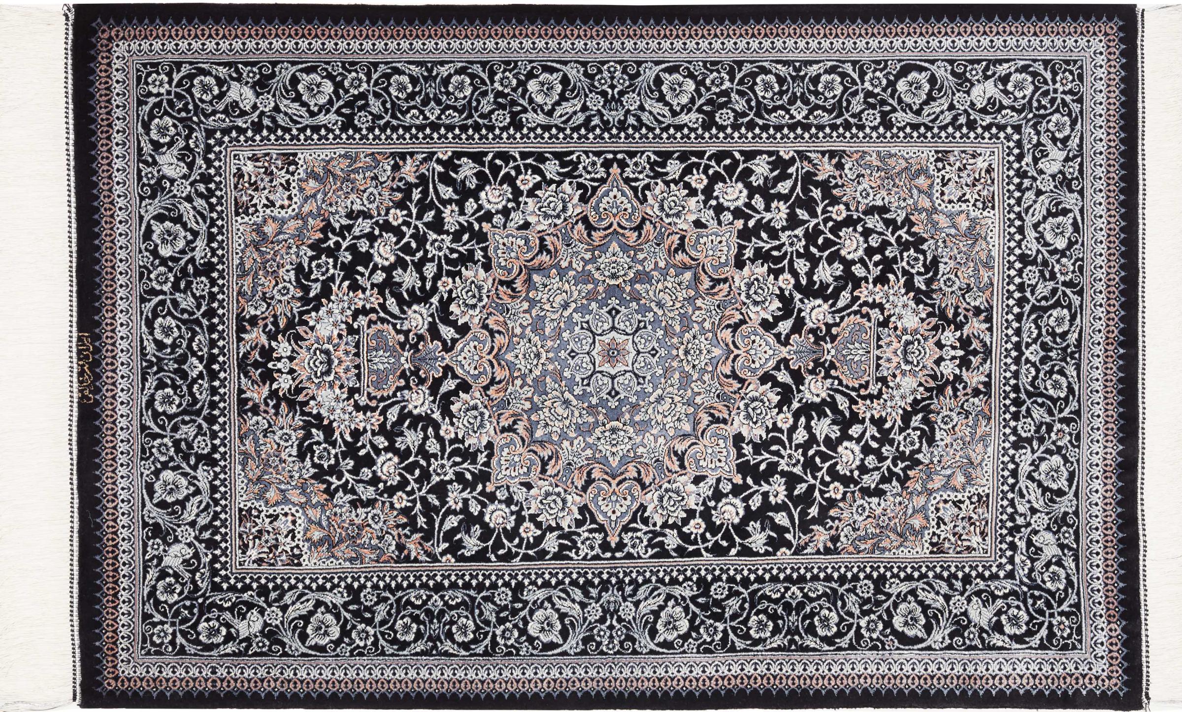 Tæppe-nr.: 247138009542107 Størrelse: 121x77 cm Tykkelse: ca. 3 mm Knuder: 1 000 000 / m² Forarbejdelse: Knyttet i hånden Luv: Silke Kæde: Silke Oprindelse: Persien / Iran Alder: Ny Vægt: ca. 2 kg Antal på lager: Unik - Kun 1 tilbage på lager