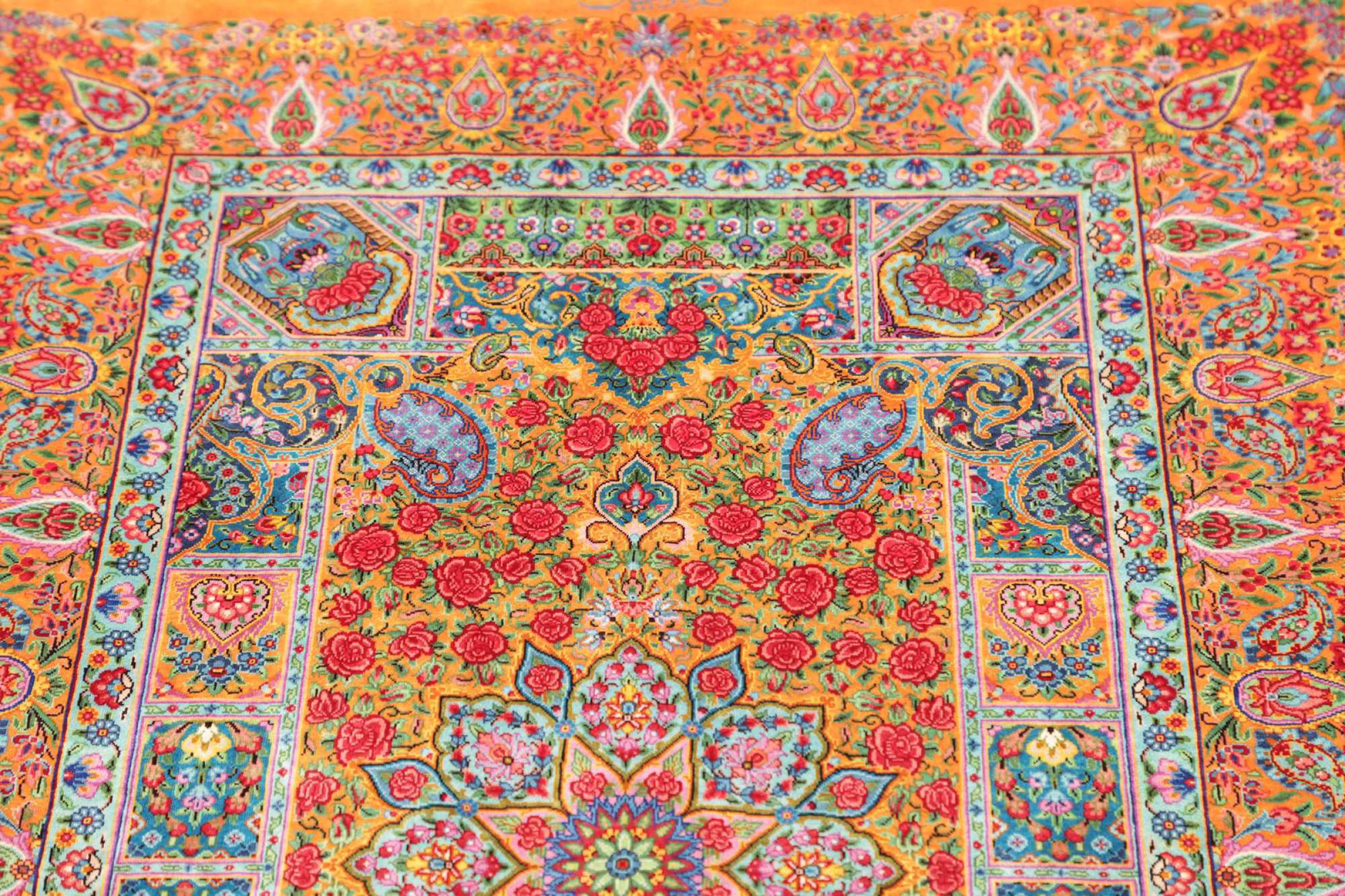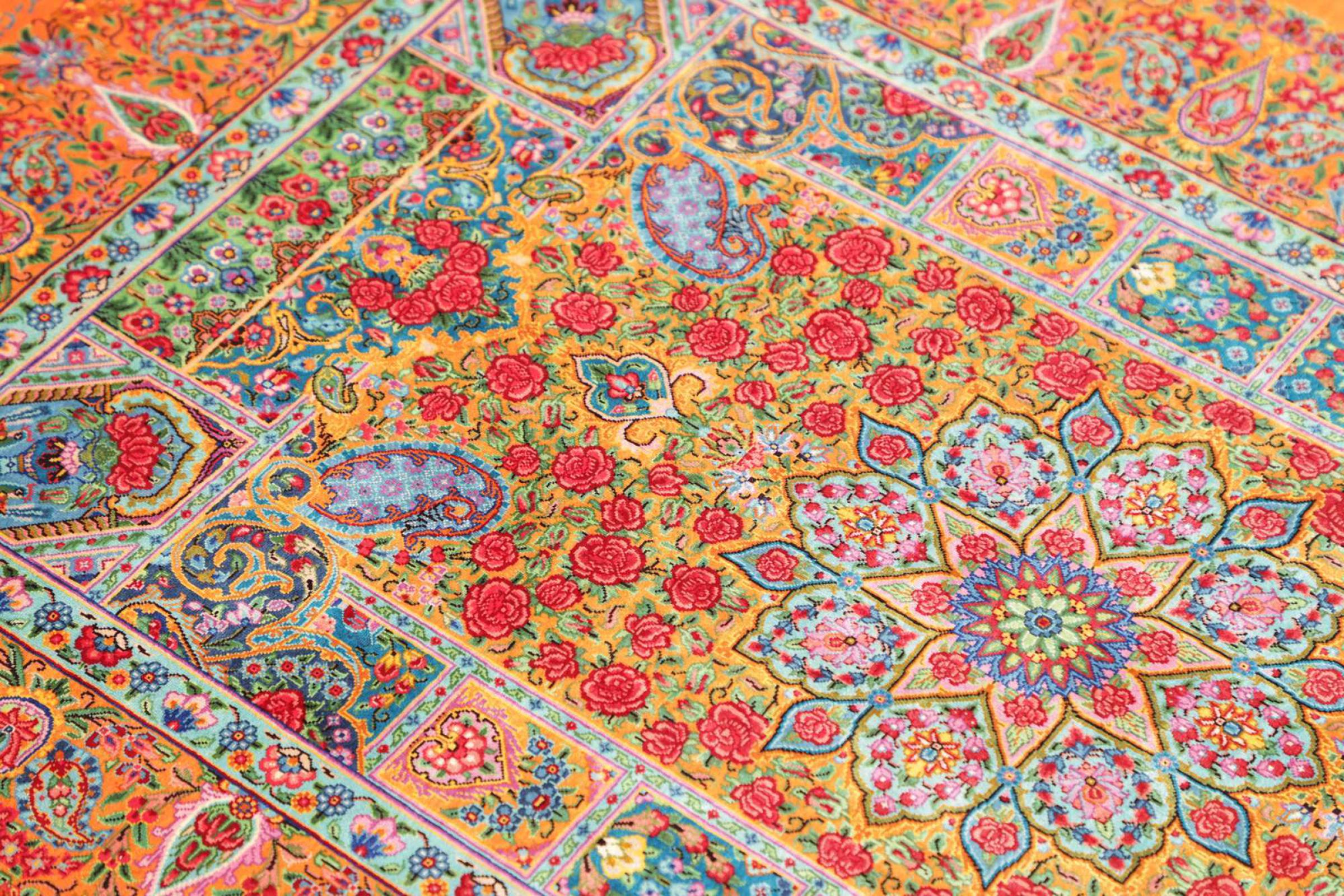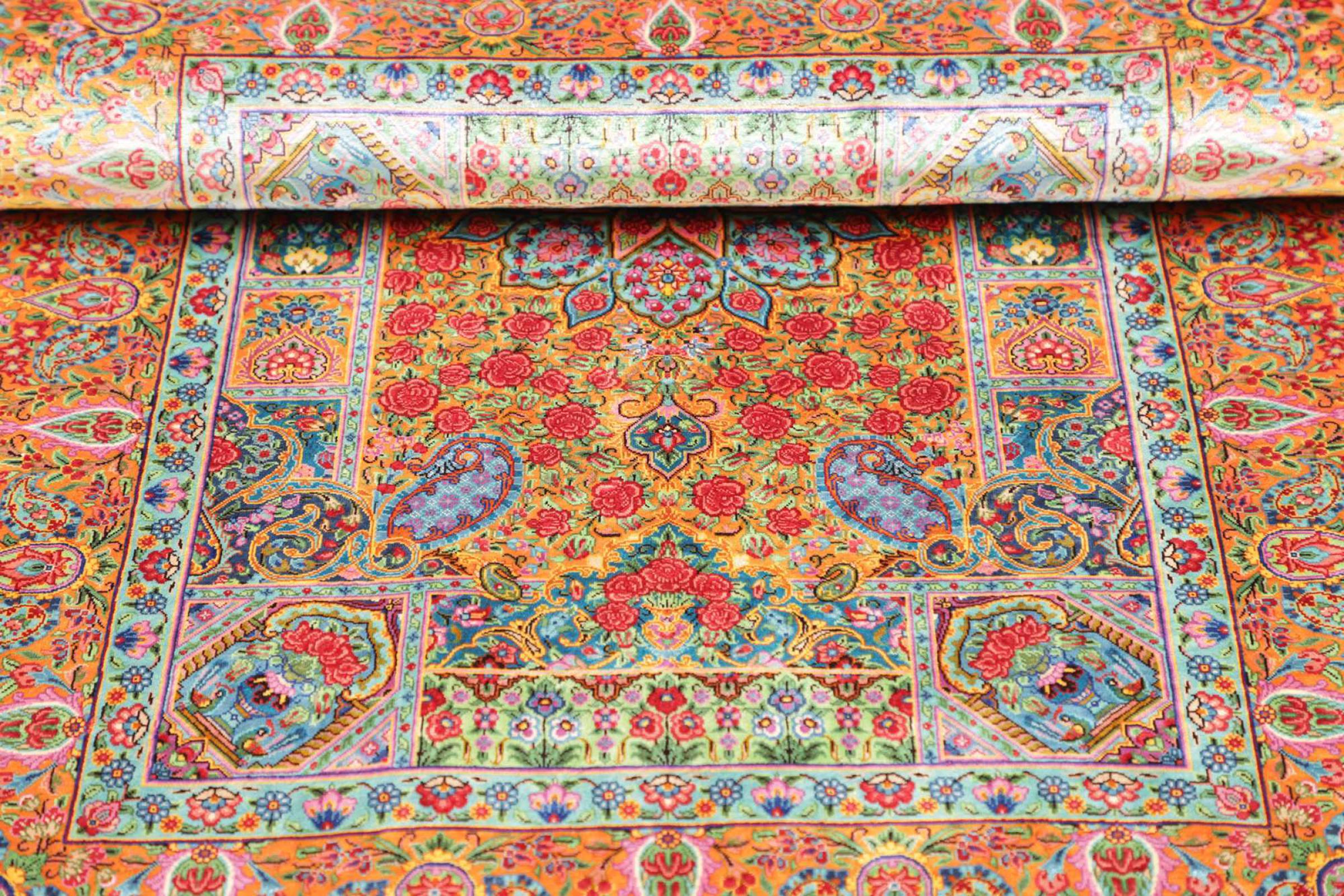 Dette Qum silketæppe er den rene luksus. Mønster og naturlige silke taler for sig selv. Orienten i perfektion til dit hjem. En silke tæppe fra Ghom opfylder endda ønsker fra elskere af den persisk tæppe kunst. Denne persisk tæppe er en blikfang og vil blive vist i ny pragt "hans" værelse.