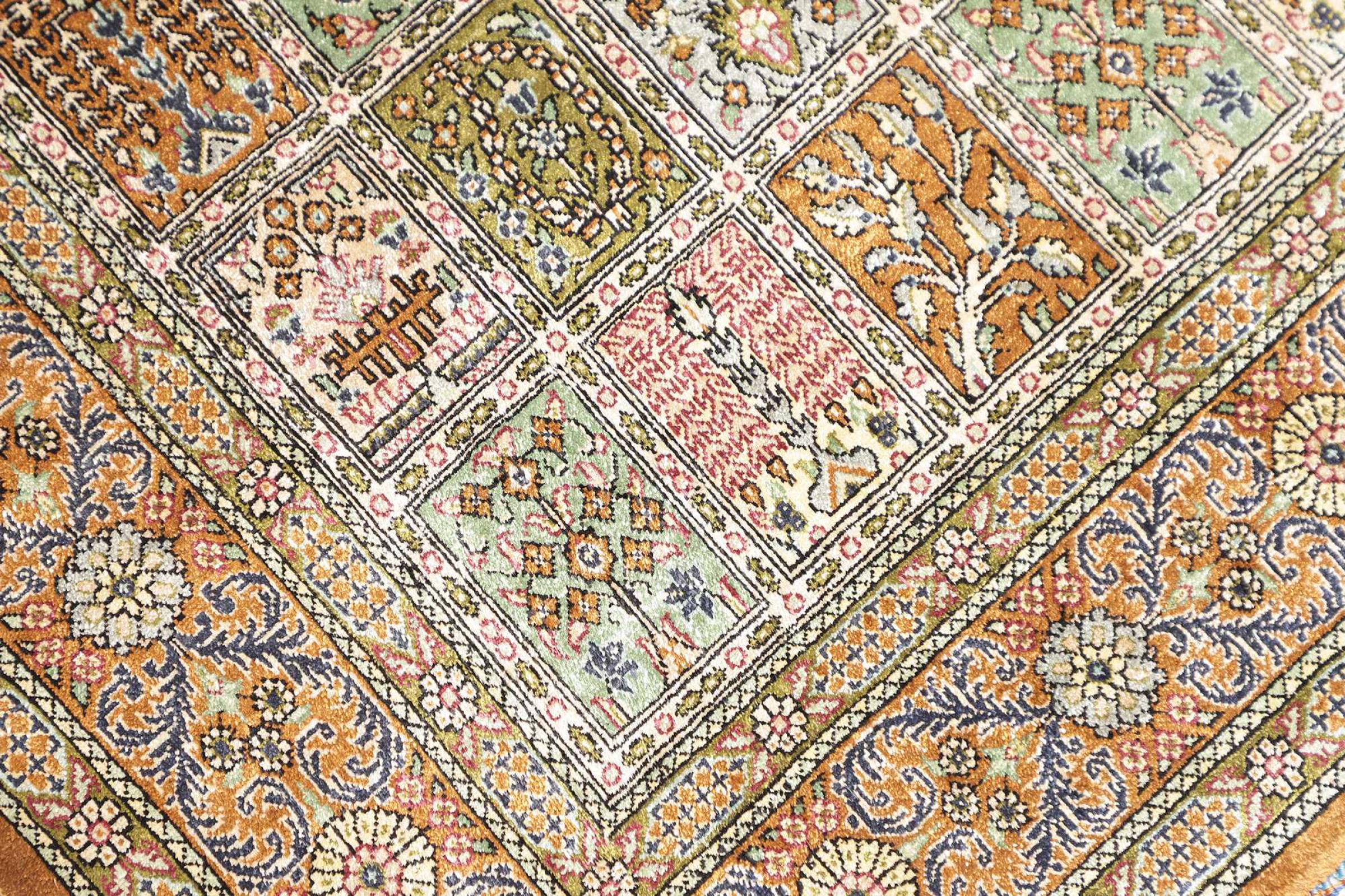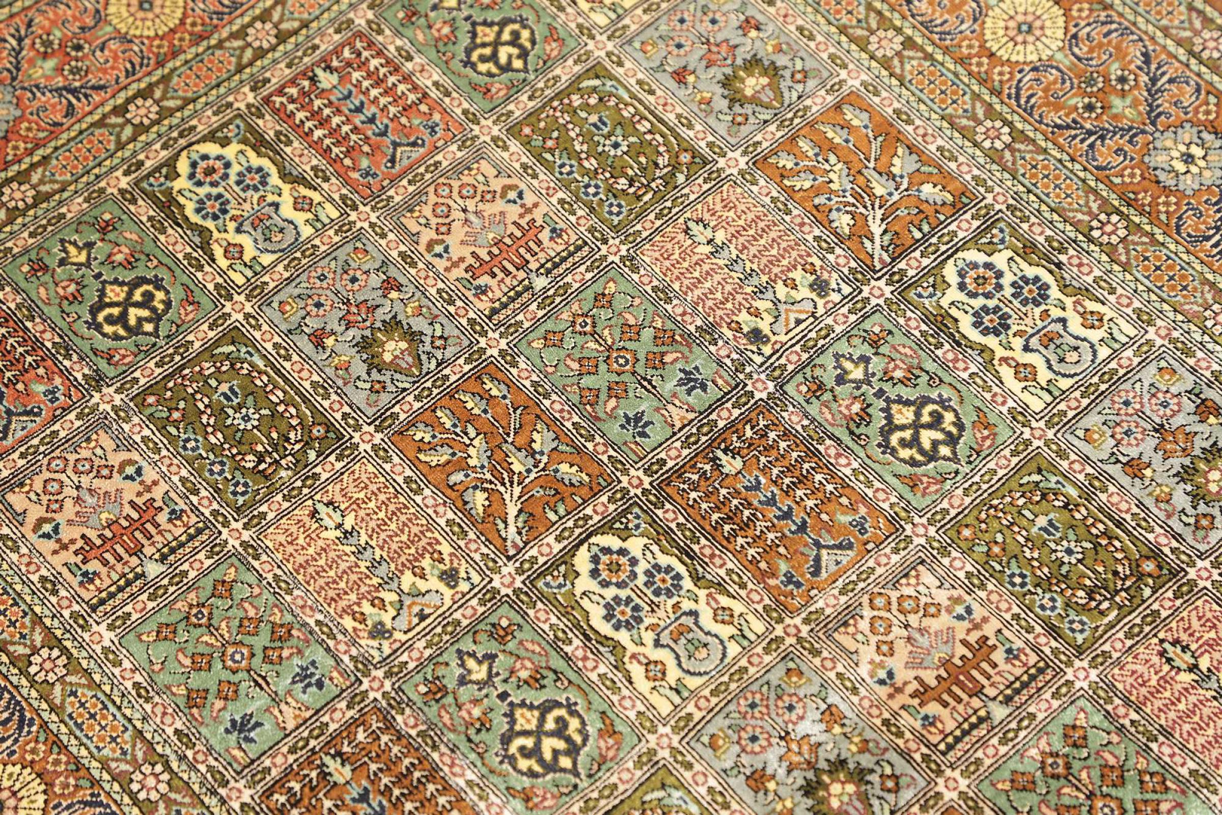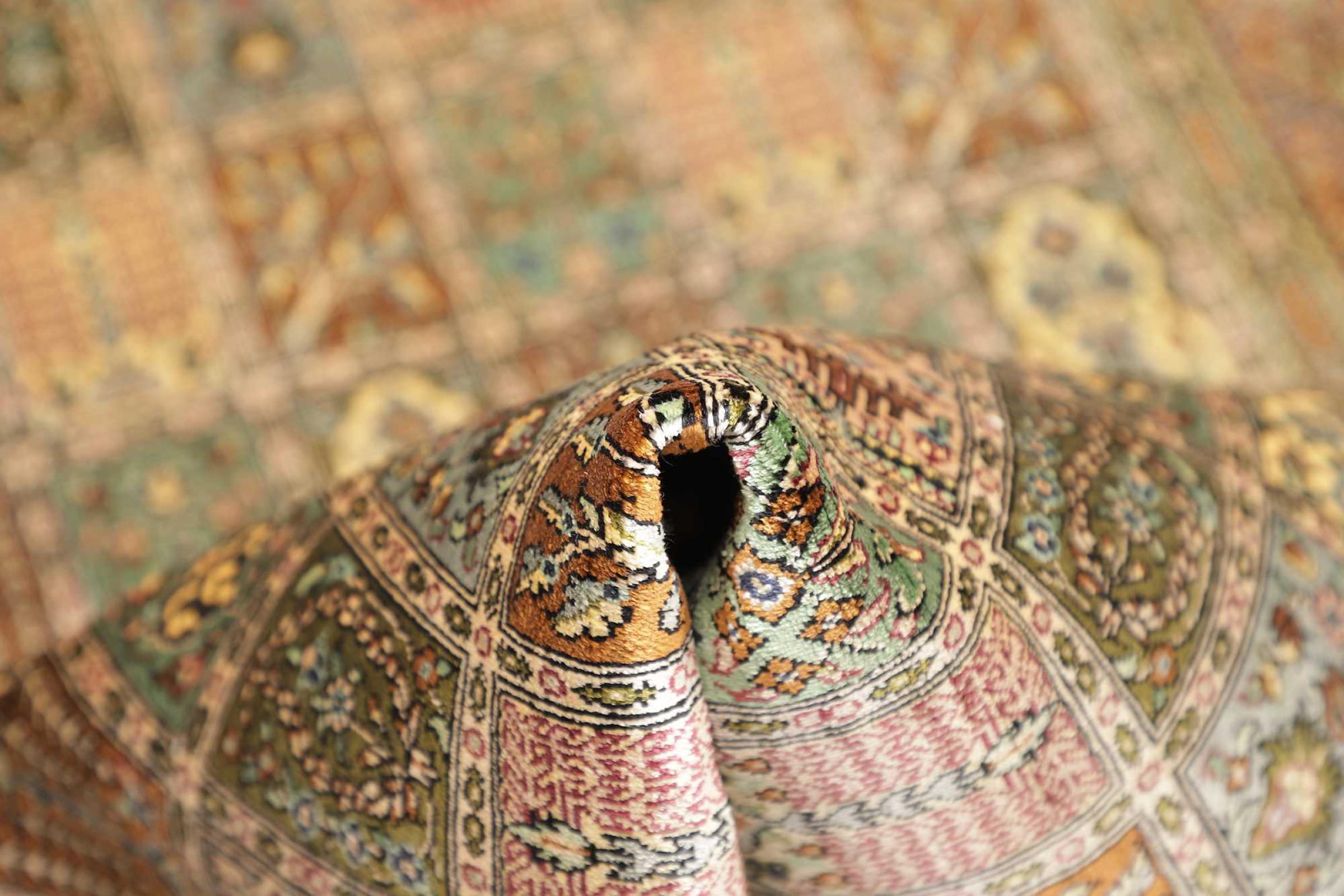 Dette Qum silketæppe er den rene luksus. Mønster og naturlige silke taler for sig selv. Orienten i perfektion til dit hjem. En silke tæppe fra Ghom opfylder endda ønsker fra elskere af den persisk tæppe kunst. Denne persisk tæppe er en blikfang og vil blive vist i ny pragt "hans" værelse.