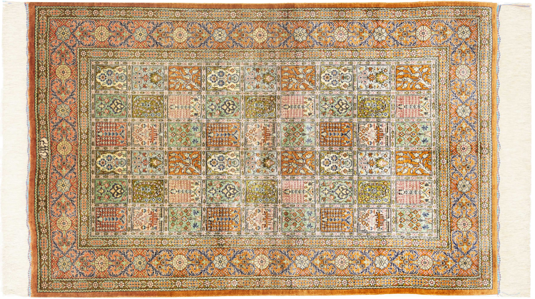 Dette tæppe kommer fra Iran (tidligere Persien) og er sandsynligvis det højeste ry blandt alle håndknyttede tæpper som persisk tæppe. Ingen region ser tilbage på en sammenlignelig lang tradition inden for vævning af tæpper end Iran. Sådan kommer de fineste og mest detaljerede tæpper her. Den persiske knudees robusthed, holdbarhed og kvalitet er uovertruffen i dag. Persiske tæpper er normalt opkaldt efter din oprindelsesregion. Så både et Nain, et Ghom og et Isfahan-tæppe kommer fra byen med samme navn i Iran.