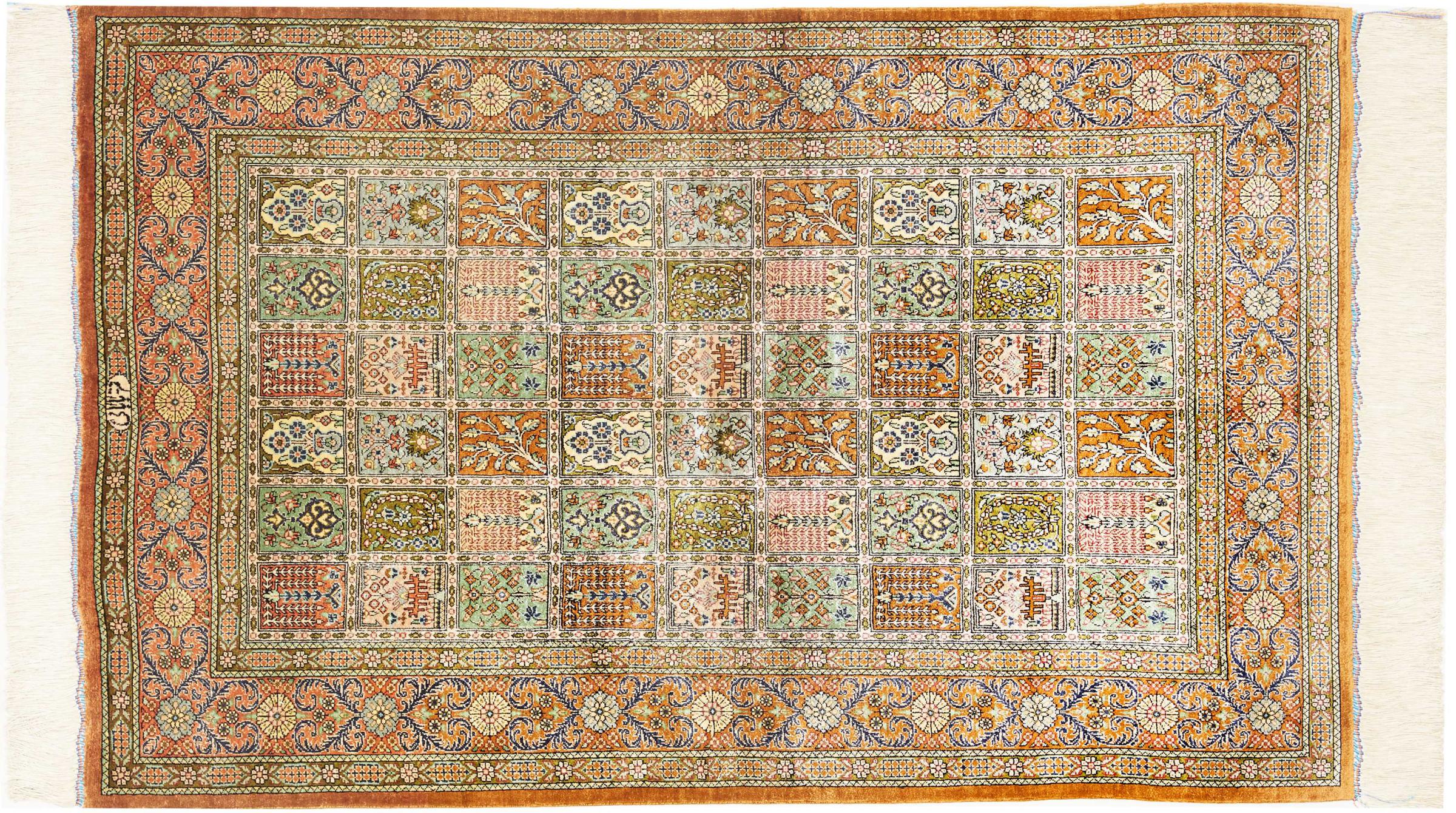 Tæppe-nr.: 312973007182968 Størrelse: 124x78 cm Tykkelse: ca. 4 mm Knuder: 1 000 000 / m² Forarbejdelse: Knyttet i hånden Luv: Silke Kæde: Silke Oprindelse: Persien / Iran Alder: Ny Vægt: ca. 2 kg Antal på lager: Unik - Kun 1 tilbage på lager