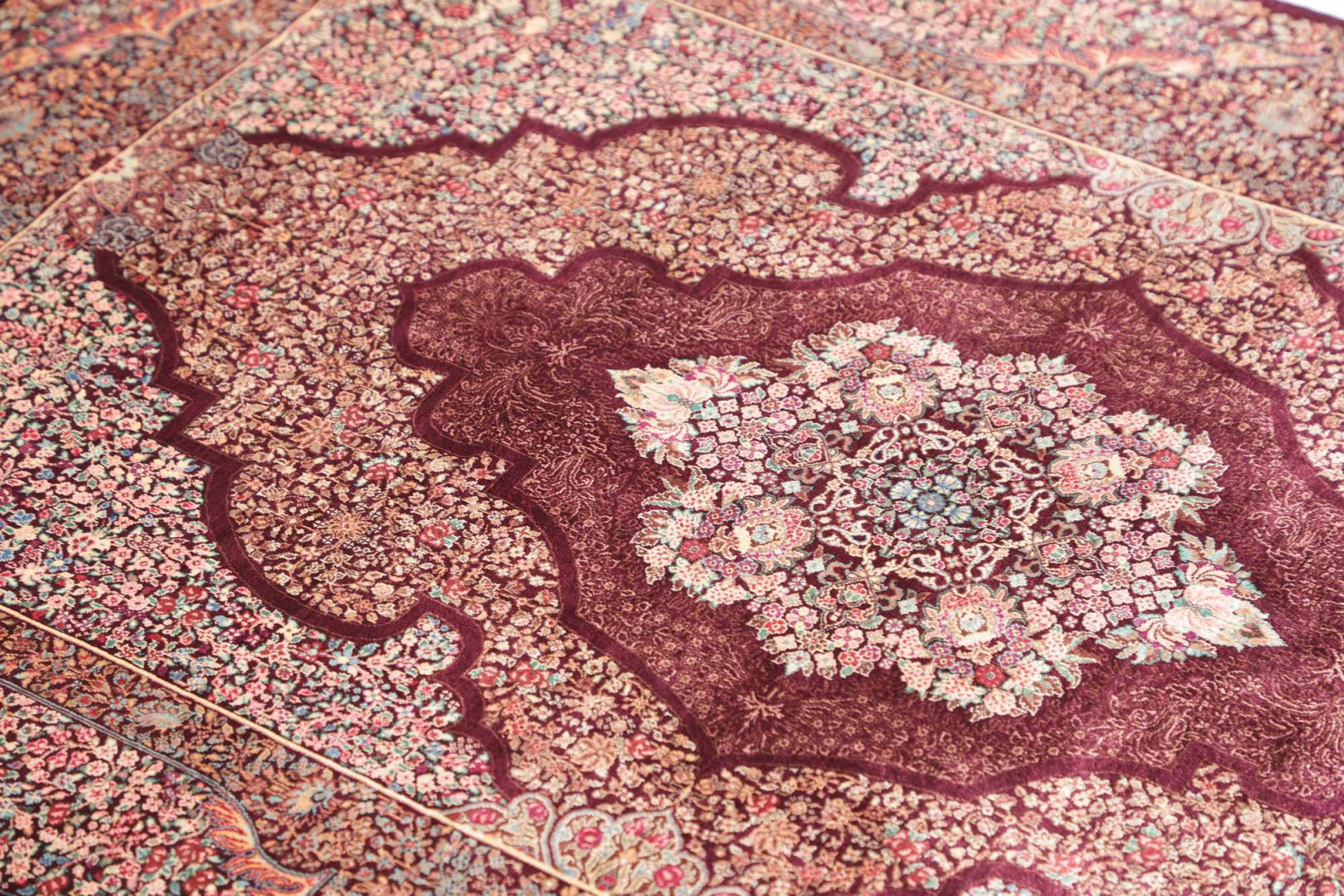 Dette Qum silketæppe er den rene luksus. Mønster og naturlige silke taler for sig selv. Orienten i perfektion til dit hjem. En silke tæppe fra Ghom opfylder endda ønsker fra elskere af den persisk tæppe kunst. Denne persisk tæppe er en blikfang og vil blive vist i ny pragt "hans" værelse.
