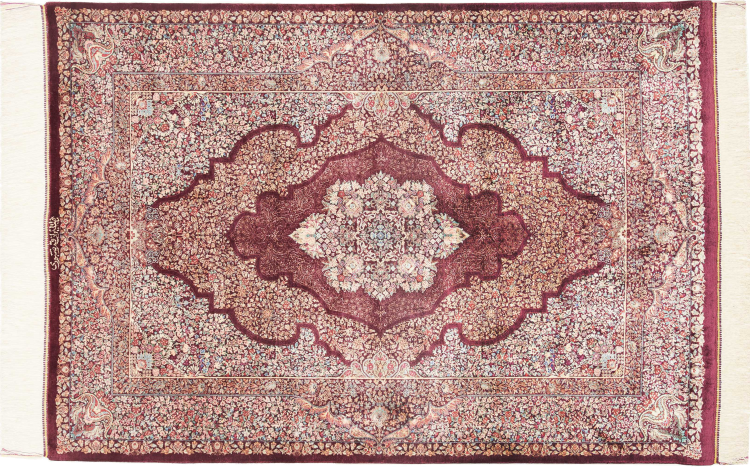 Tæppe-nr.: 247306002926690 Størrelse: 144x99 cm Tykkelse: ca. 3 mm Knuder: 1 000 000 / m² Forarbejdelse: Knyttet i hånden Luv: Silke Kæde: Silke Oprindelse: Persien / Iran Alder: Ny Vægt: ca. 3 kg Antal på lager: Unik - Kun 1 tilbage på lager