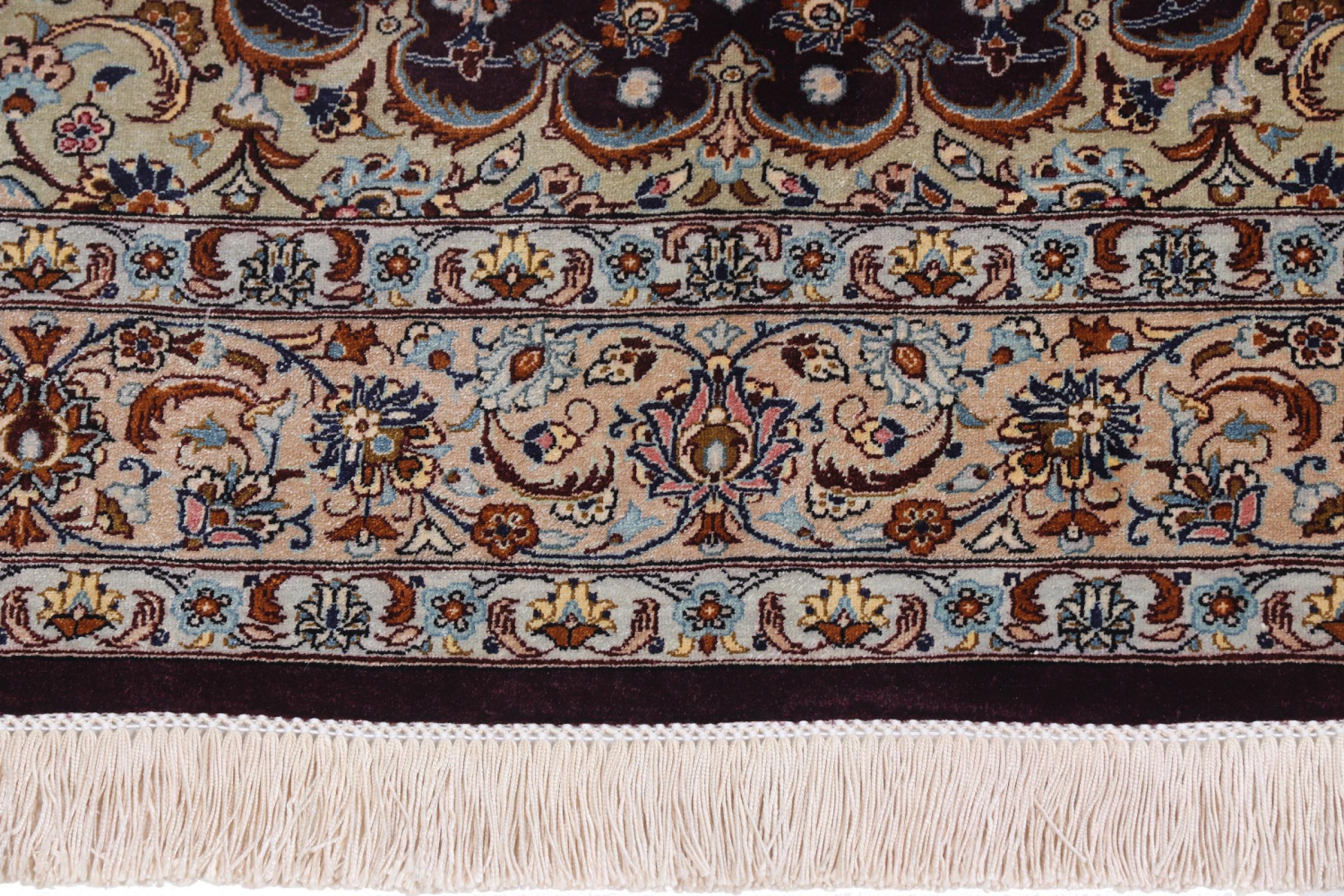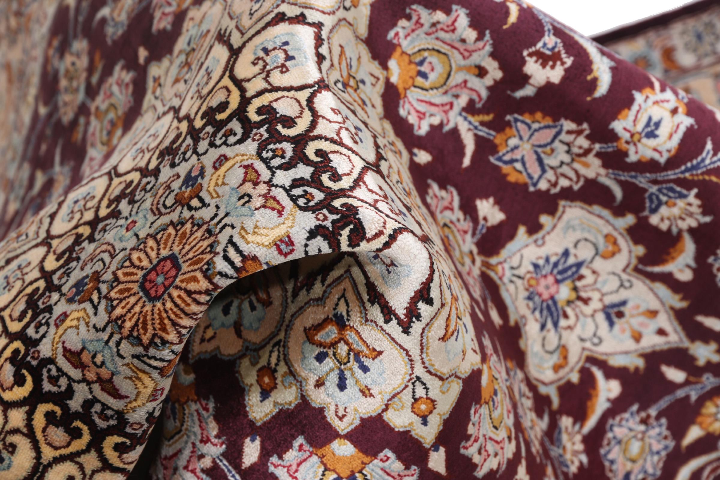 Dette Qum silketæppe er den rene luksus. Mønster og naturlige silke taler for sig selv. Orienten i perfektion til dit hjem. En silke tæppe fra Ghom opfylder endda ønsker fra elskere af den persisk tæppe kunst. Denne persisk tæppe er en blikfang og vil blive vist i ny pragt "hans" værelse.