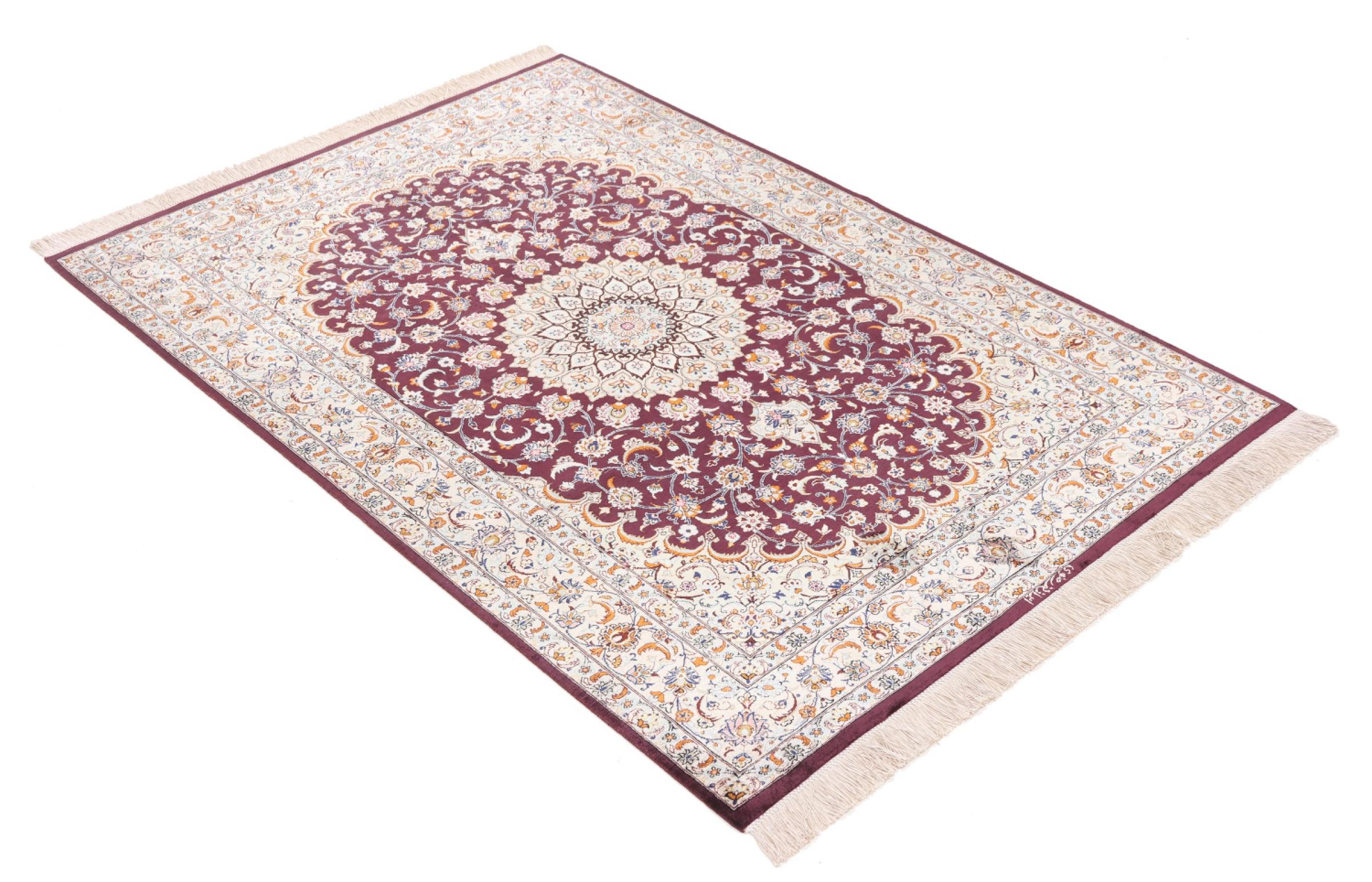 Tæppe-nr.: 200240056908 Størrelse: 147x100 cm Tykkelse: ca. 3 mm Knuder: 1 000 000 / m² Forarbejdelse: Knyttet i hånden Luv: Silke Kæde: Silke Oprindelse: Persien / Iran Alder: Ny Vægt: ca. 3 kg Antal på lager: Unik - Kun 1 tilbage på lager