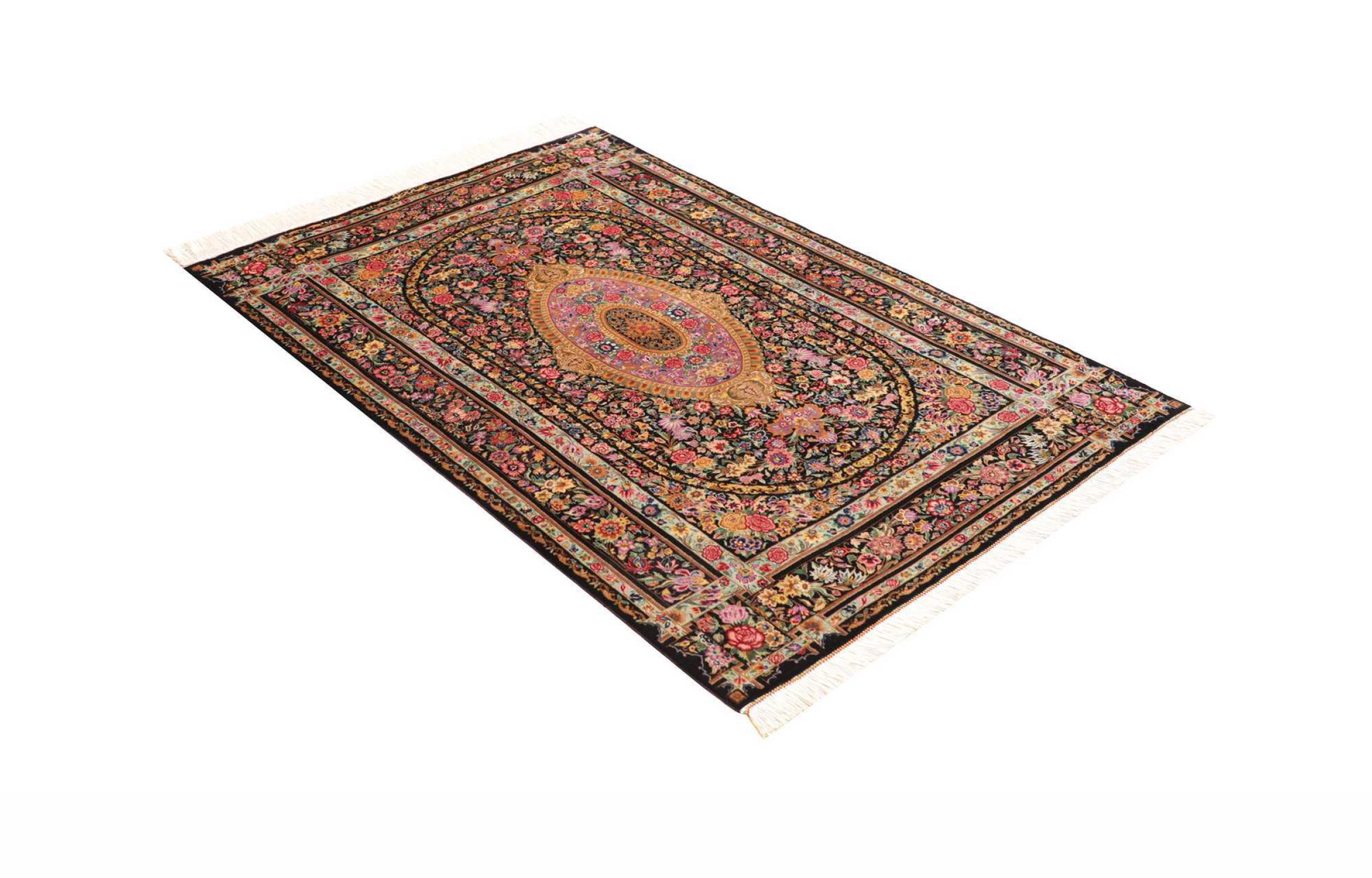 Tæppe-nr.: 252761002053558 Størrelse: 150x101 cm Tykkelse: ca. 3 mm Knuder: 1 000 000 / m² Forarbejdelse: Knyttet i hånden Luv: Silke Kæde: Silke Oprindelse: Persien / Iran Alder: Ny Vægt: ca. 3 kg Antal på lager: Unik - Kun 1 tilbage på lager