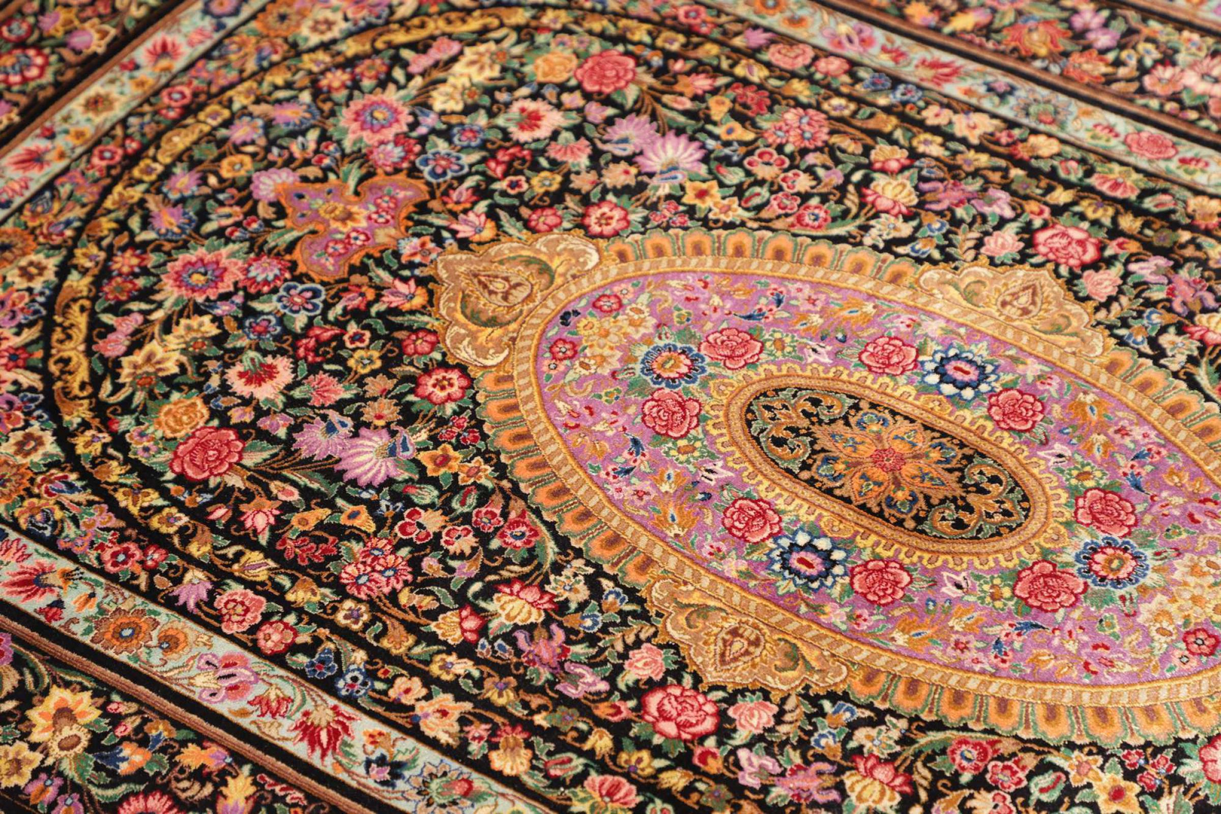 Dette Qum silketæppe er den rene luksus. Mønster og naturlige silke taler for sig selv. Orienten i perfektion til dit hjem. En silke tæppe fra Ghom opfylder endda ønsker fra elskere af den persisk tæppe kunst. Denne persisk tæppe er en blikfang og vil blive vist i ny pragt "hans" værelse.