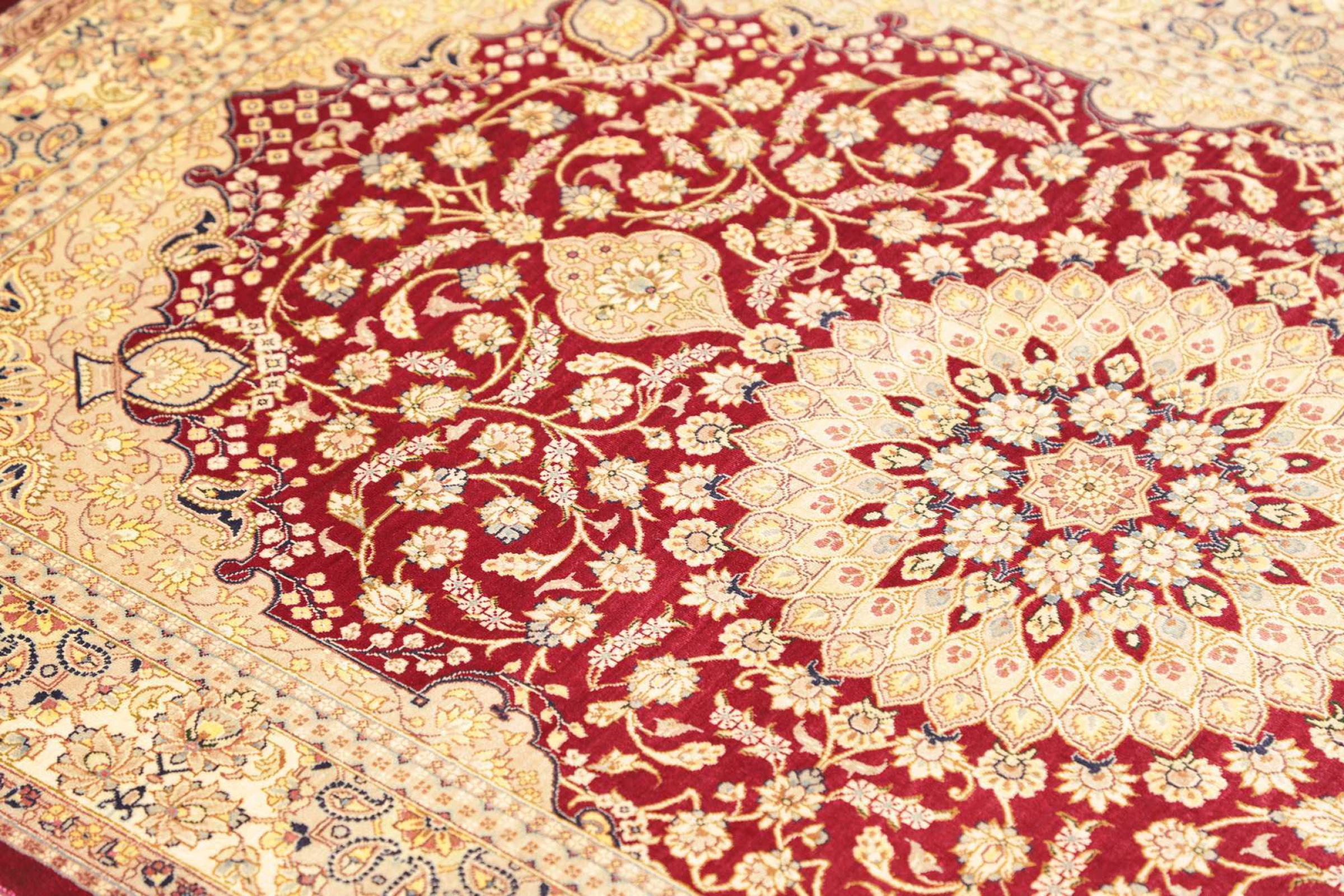 Dette Qum silketæppe er den rene luksus. Mønster og naturlige silke taler for sig selv. Orienten i perfektion til dit hjem. En silke tæppe fra Ghom opfylder endda ønsker fra elskere af den persisk tæppe kunst. Denne persisk tæppe er en blikfang og vil blive vist i ny pragt "hans" værelse.