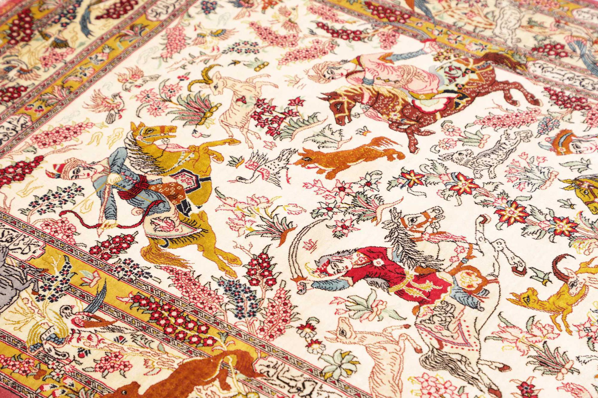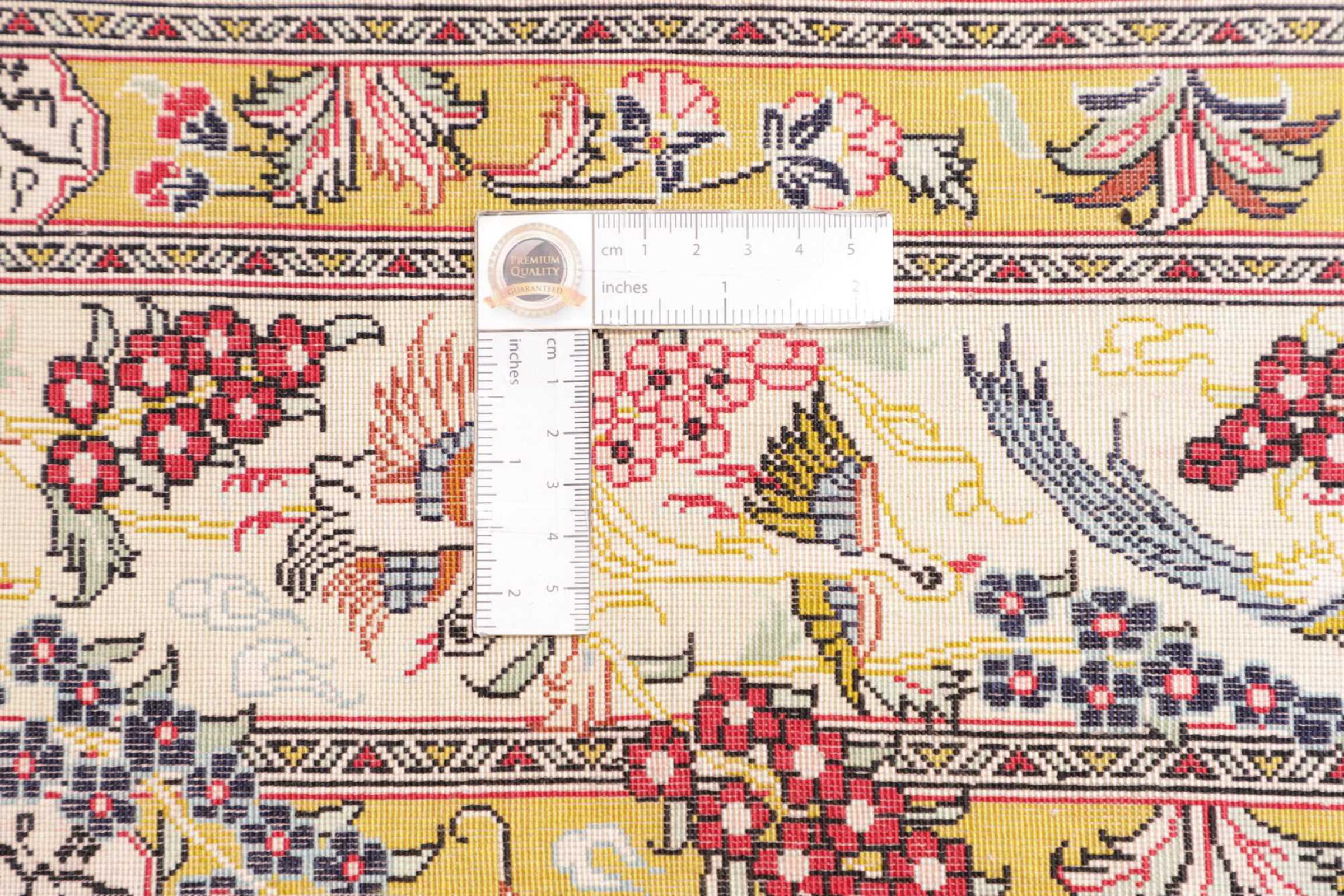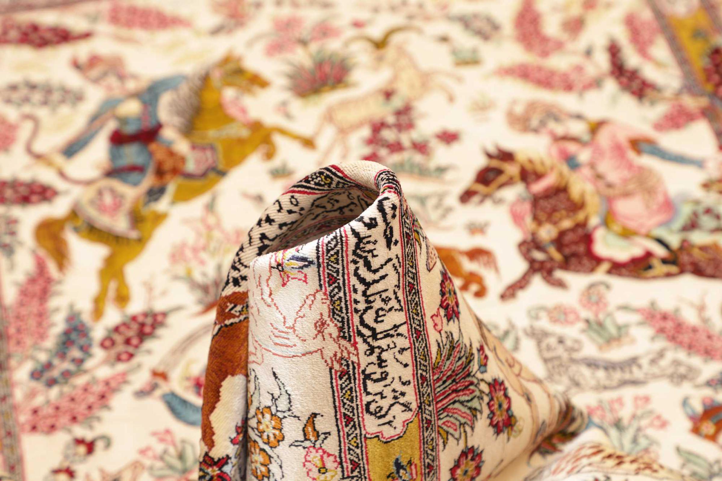 Tæppe-nr.: 24708400706409 Størrelse: 151x97 cm Tykkelse: ca. 3 mm Knuder: 1 000 000 / m² Forarbejdelse: Knyttet i hånden Luv: Silke Kæde: Silke Oprindelse: Persien / Iran Alder: Ny Vægt: ca. 3 kg Antal på lager: Unik - Kun 1 tilbage på lager