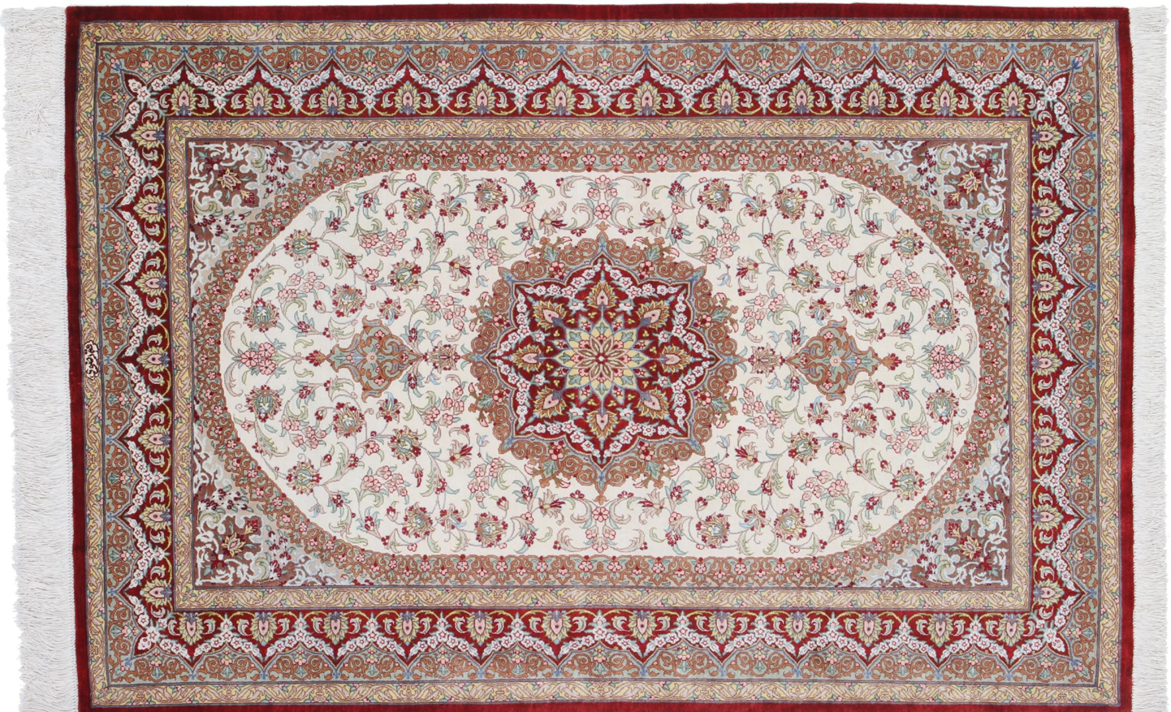 Tæppe-nr.: 34987007840928 Størrelse: 151x99 cm Tykkelse: ca. 3 mm Knuder: 1 000 000 / m² Forarbejdelse: Knyttet i hånden Luv: Silke Kæde: Silke Oprindelse: Persien / Iran Alder: Ny Vægt: ca. 3 kg Antal på lager: Unik - Kun 1 tilbage på lager