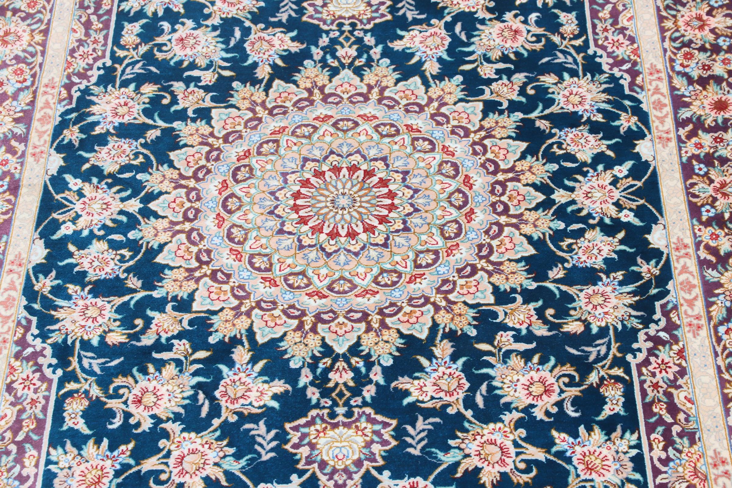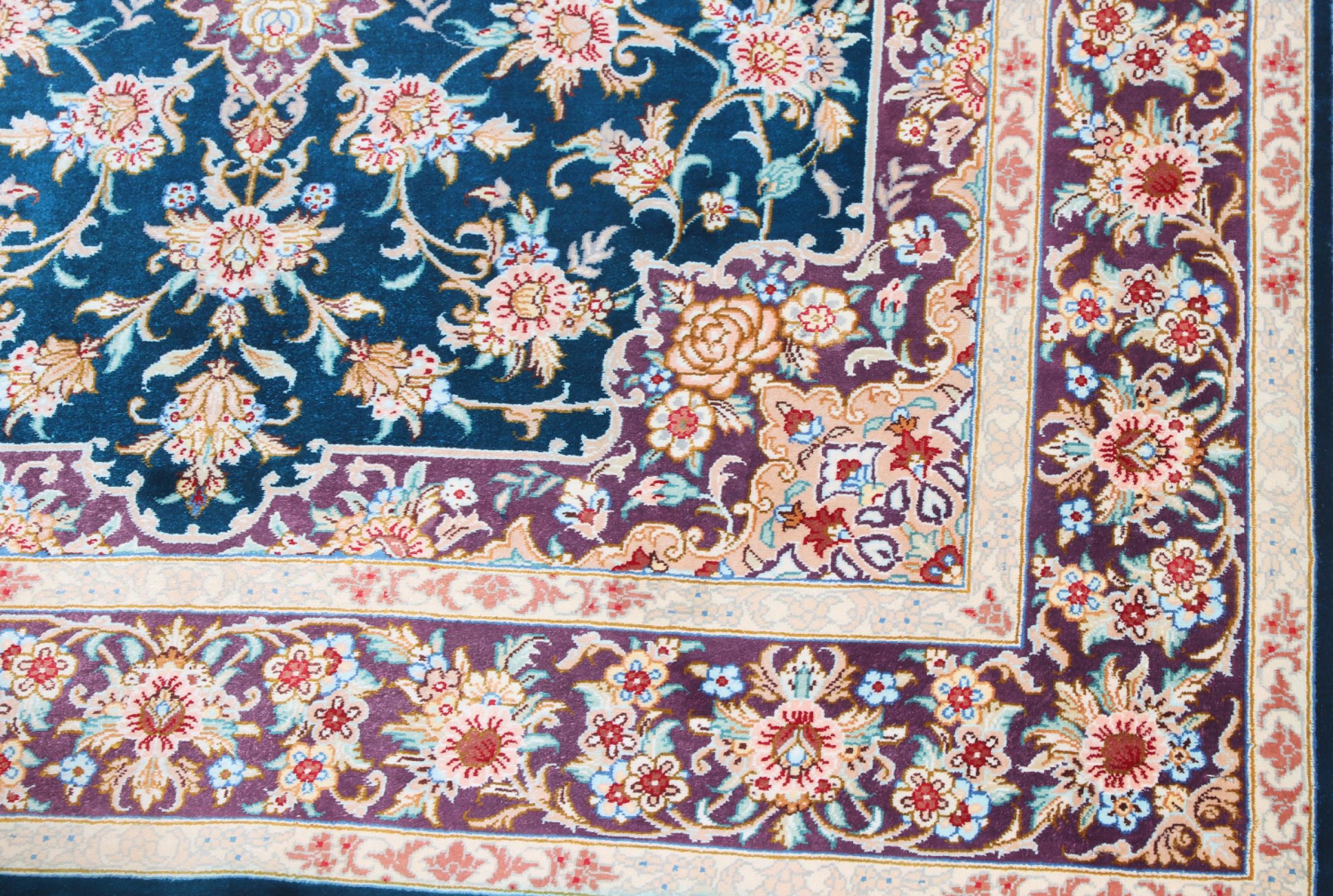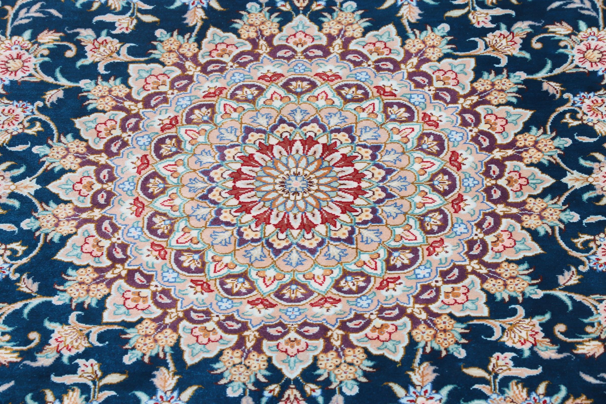 Dette Qum silketæppe er den rene luksus. Mønster og naturlige silke taler for sig selv. Orienten i perfektion til dit hjem. En silke tæppe fra Ghom opfylder endda ønsker fra elskere af den persisk tæppe kunst. Denne persisk tæppe er en blikfang og vil blive vist i ny pragt "hans" værelse.