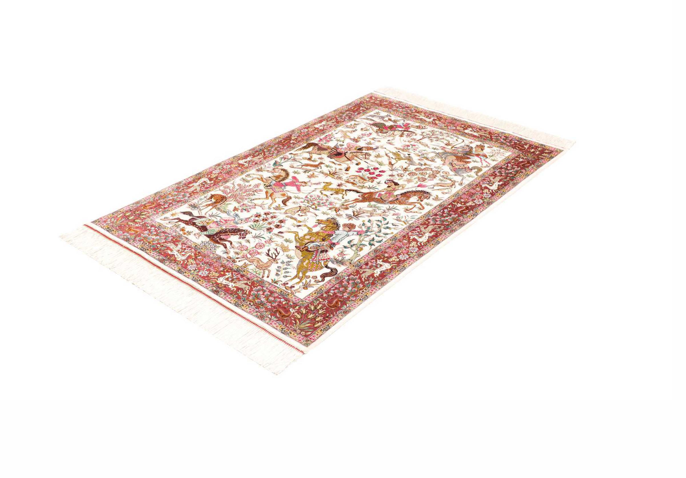 Tæppe-nr.: 247305005389271 Størrelse: 152x101 cm Tykkelse: ca. 3 mm Knuder: 1 000 000 / m² Forarbejdelse: Knyttet i hånden Luv: Silke Kæde: Silke Oprindelse: Persien / Iran Alder: Ny Vægt: ca. 3 kg Antal på lager: Unik - Kun 1 tilbage på lager