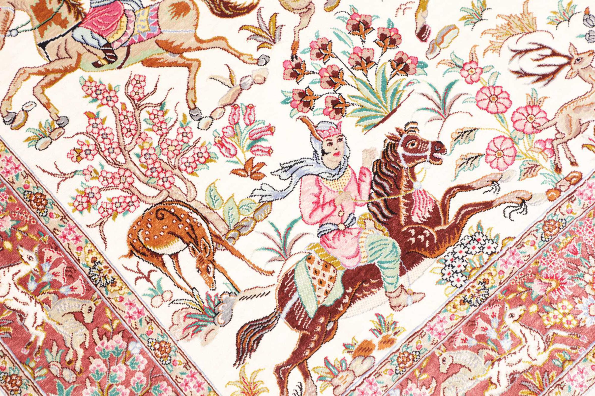 Dette Qum silketæppe er den rene luksus. Mønster og naturlige silke taler for sig selv. Orienten i perfektion til dit hjem. En silke tæppe fra Ghom opfylder endda ønsker fra elskere af den persisk tæppe kunst. Denne persisk tæppe er en blikfang og vil blive vist i ny pragt "hans" værelse.