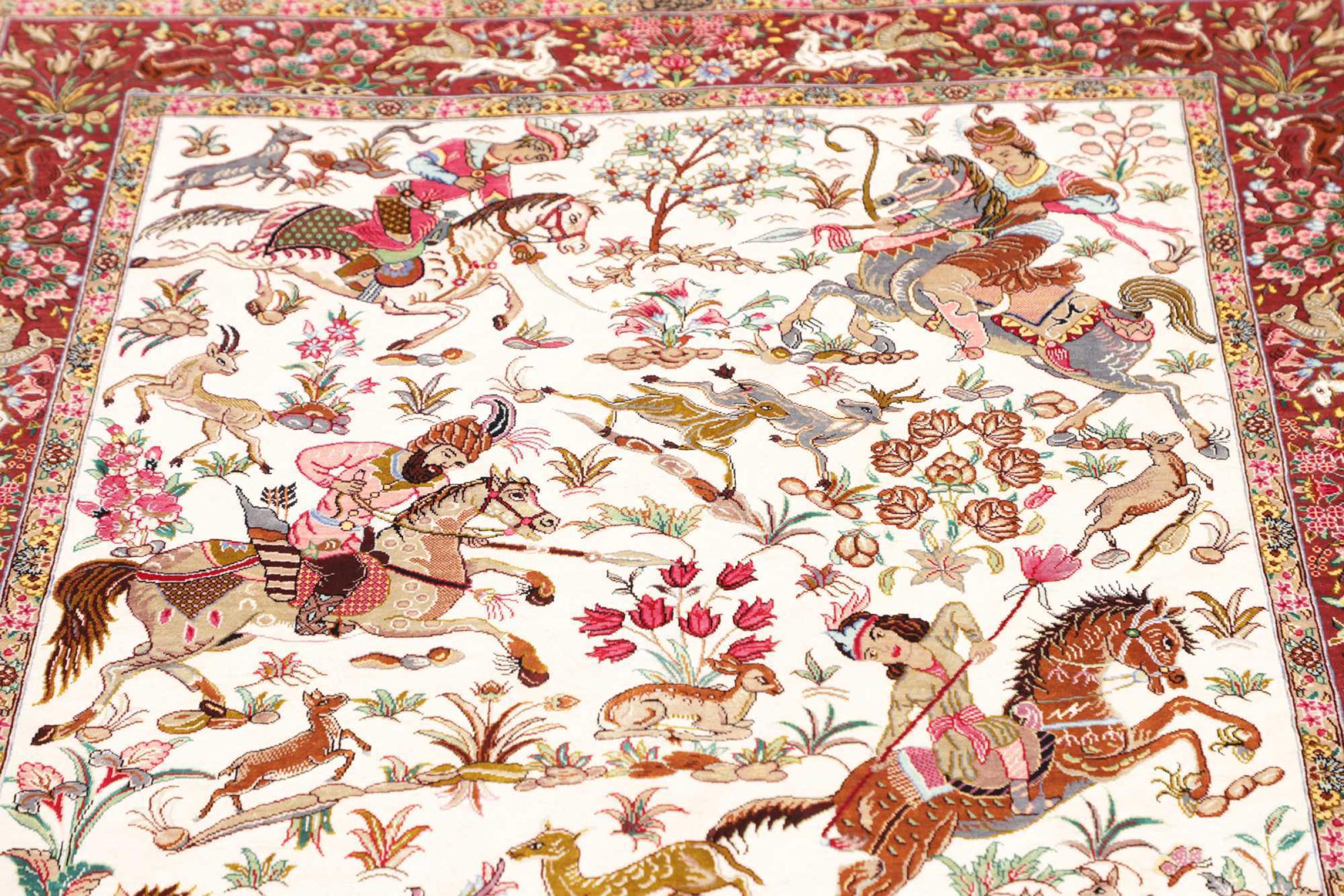 Dette tæppe kommer fra Iran (tidligere Persien) og er sandsynligvis det højeste ry blandt alle håndknyttede tæpper som persisk tæppe. Ingen region ser tilbage på en sammenlignelig lang tradition inden for vævning af tæpper end Iran. Sådan kommer de fineste og mest detaljerede tæpper her. Den persiske knudees robusthed, holdbarhed og kvalitet er uovertruffen i dag. Persiske tæpper er normalt opkaldt efter din oprindelsesregion. Så både et Nain, et Ghom og et Isfahan-tæppe kommer fra byen med samme navn i Iran.