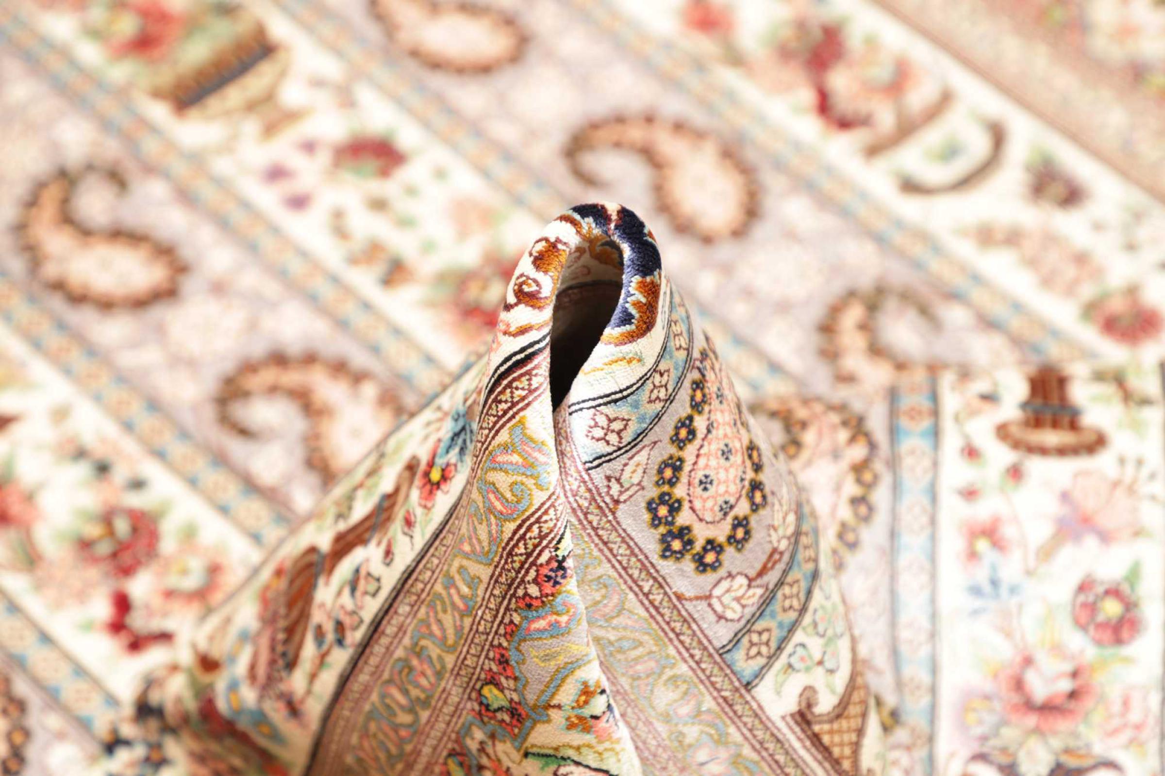 Dette Qum silketæppe er den rene luksus. Mønster og naturlige silke taler for sig selv. Orienten i perfektion til dit hjem. En silke tæppe fra Ghom opfylder endda ønsker fra elskere af den persisk tæppe kunst. Denne persisk tæppe er en blikfang og vil blive vist i ny pragt "hans" værelse.