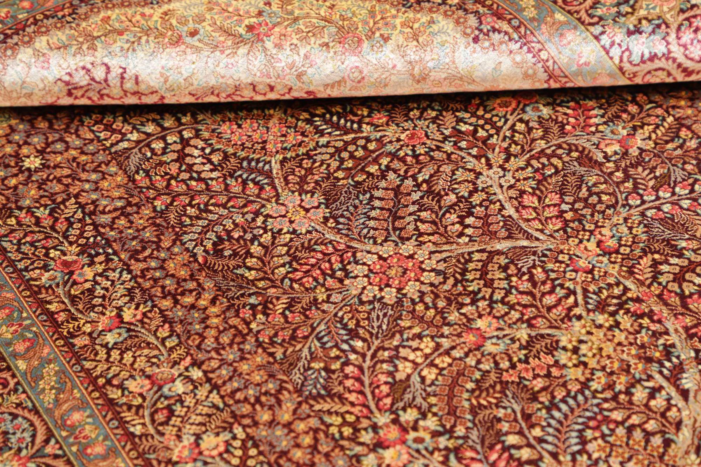 Dette Qum silketæppe er den rene luksus. Mønster og naturlige silke taler for sig selv. Orienten i perfektion til dit hjem. En silke tæppe fra Ghom opfylder endda ønsker fra elskere af den persisk tæppe kunst. Denne persisk tæppe er en blikfang og vil blive vist i ny pragt "hans" værelse.