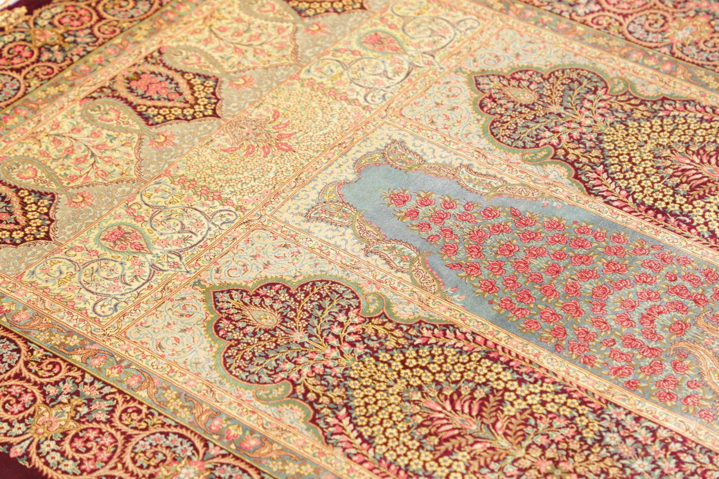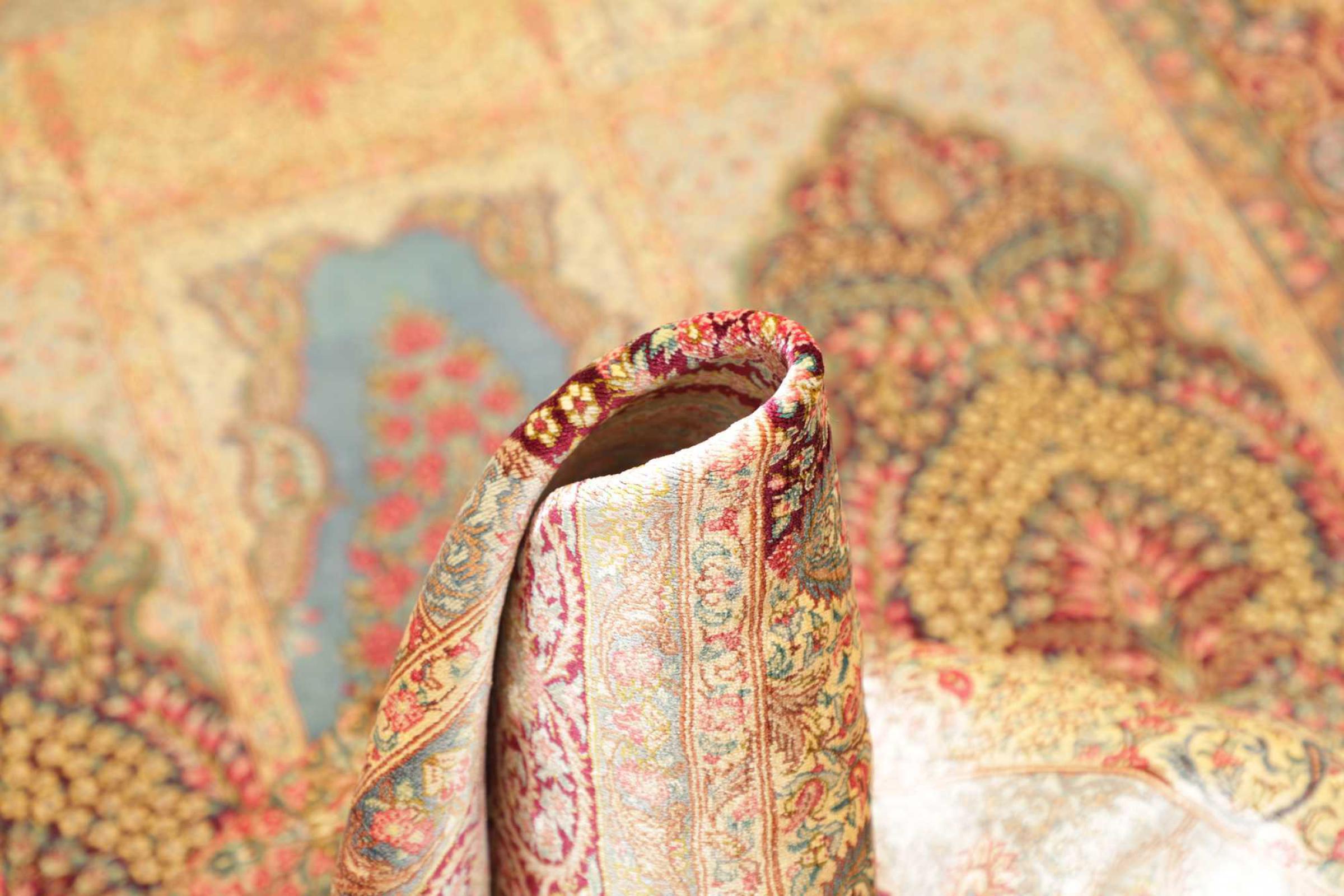 Dette Qum silketæppe er den rene luksus. Mønster og naturlige silke taler for sig selv. Orienten i perfektion til dit hjem. En silke tæppe fra Ghom opfylder endda ønsker fra elskere af den persisk tæppe kunst. Denne persisk tæppe er en blikfang og vil blive vist i ny pragt "hans" værelse.