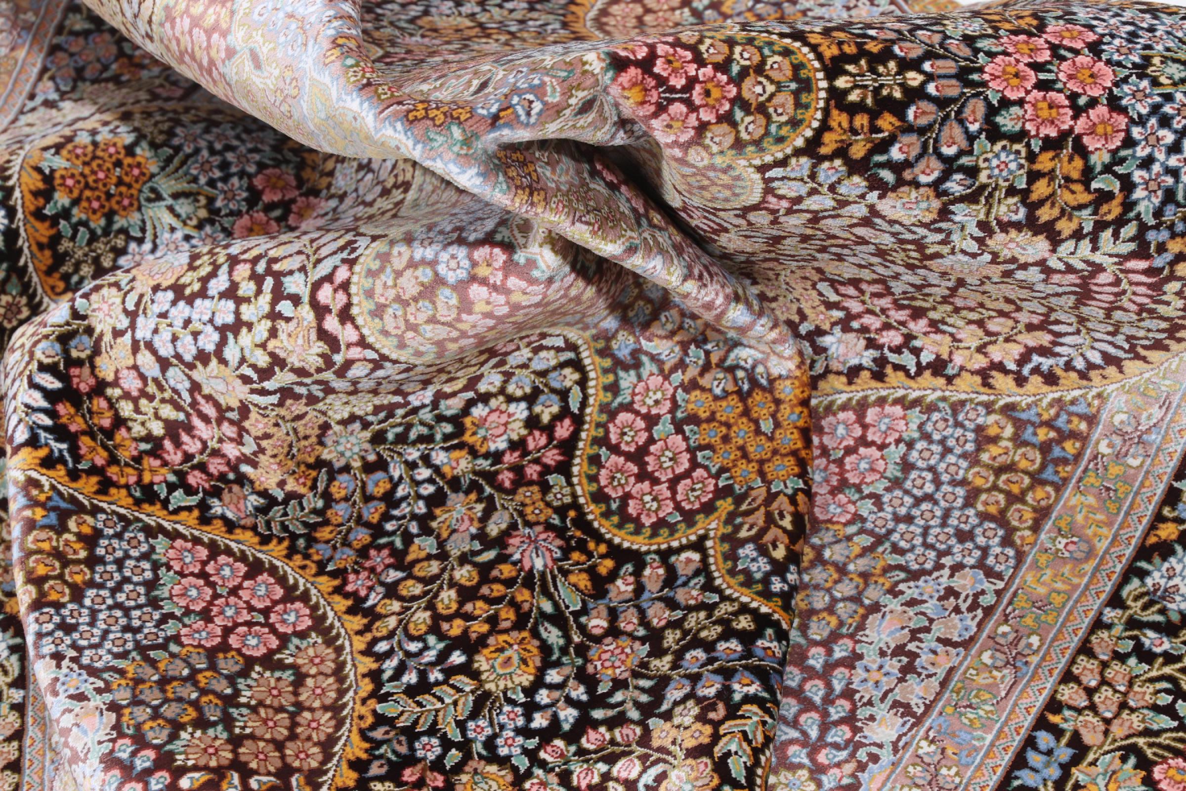 Dette Qum silketæppe er den rene luksus. Mønster og naturlige silke taler for sig selv. Orienten i perfektion til dit hjem. En silke tæppe fra Ghom opfylder endda ønsker fra elskere af den persisk tæppe kunst. Denne persisk tæppe er en blikfang og vil blive vist i ny pragt "hans" værelse.