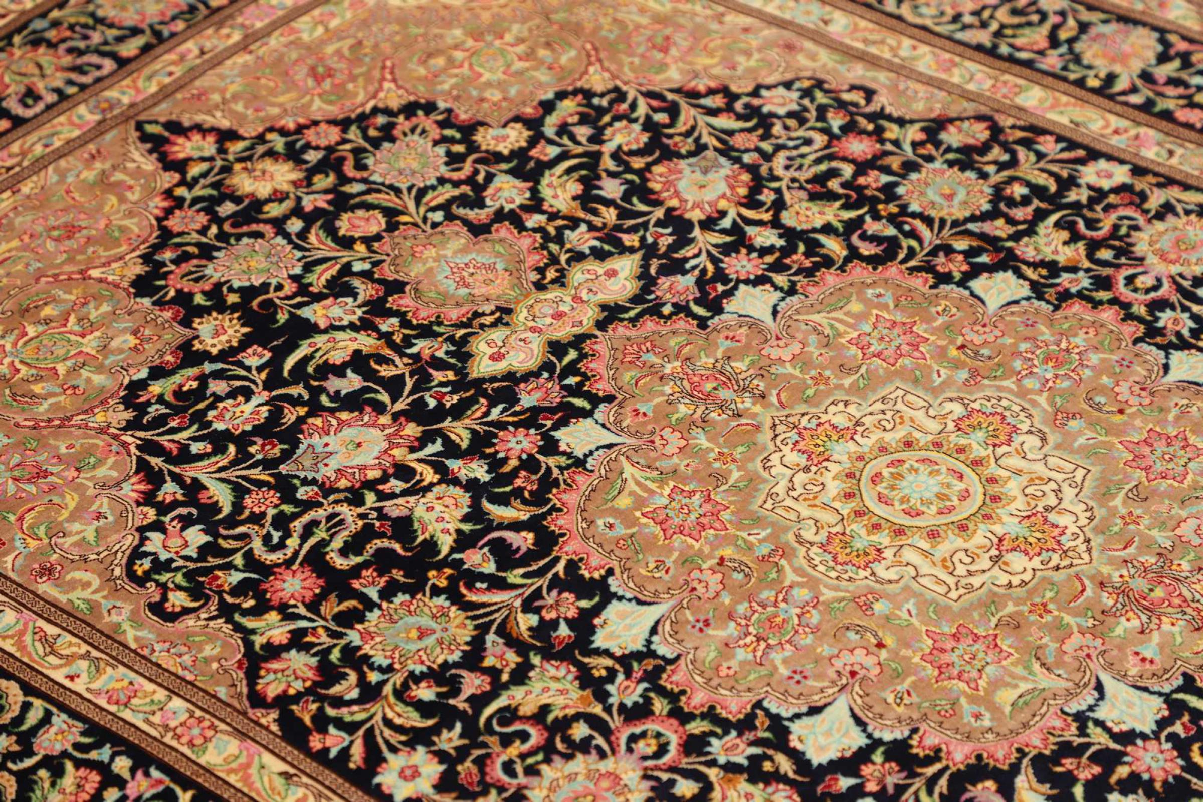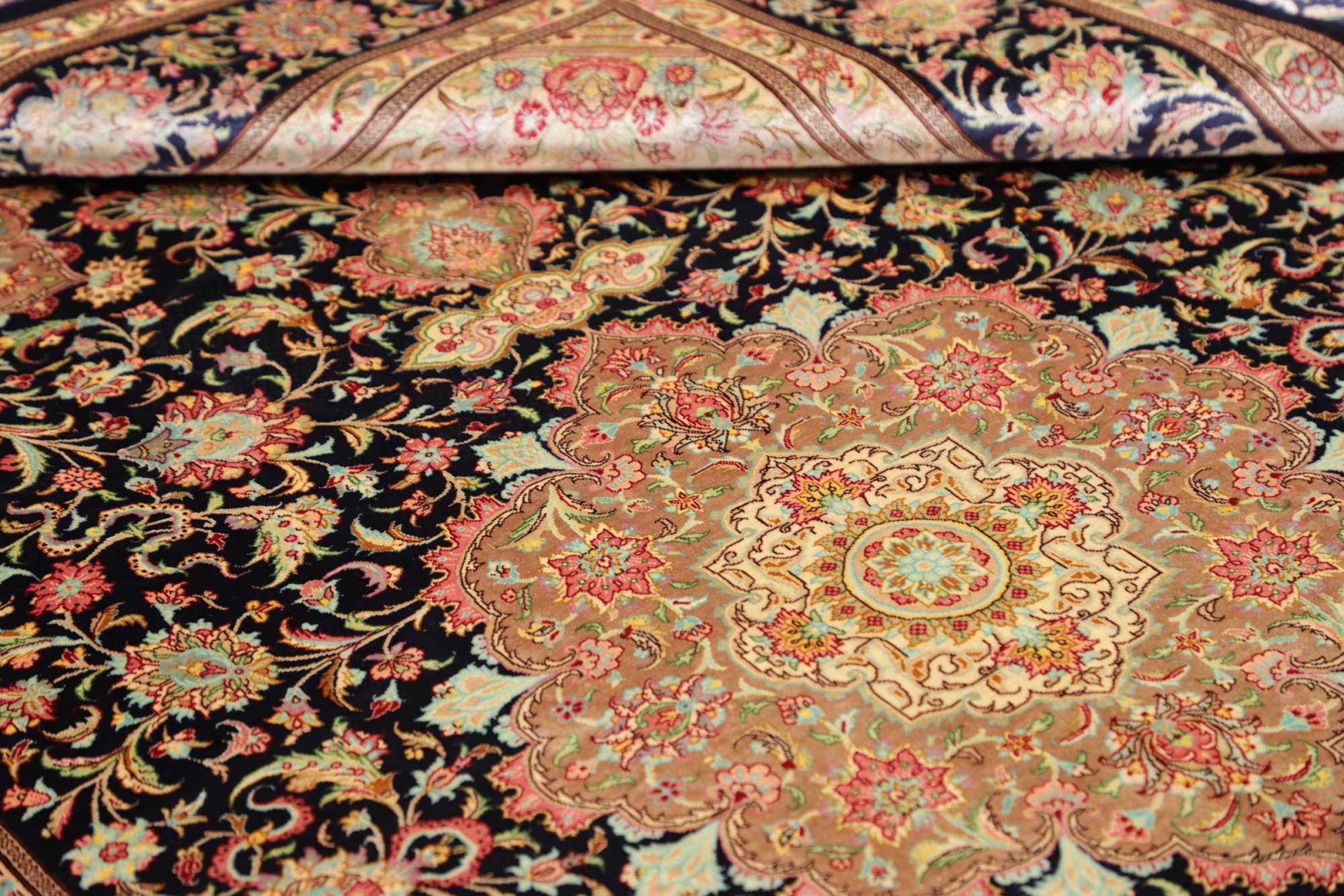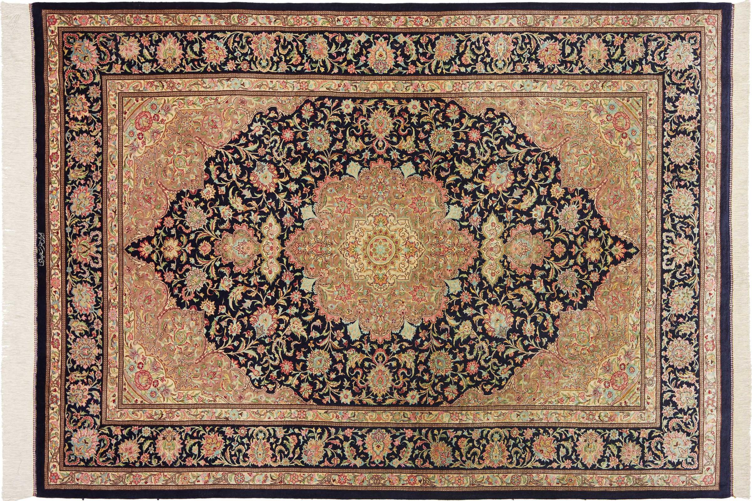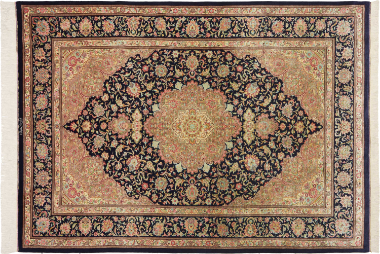 Tæppe-nr.: 252665004887929 Størrelse: 193x137 cm Tykkelse: ca. 3 mm Knuder: 1 000 000 / m² Forarbejdelse: Knyttet i hånden Luv: Silke Kæde: Silke Oprindelse: Persien / Iran Alder: Ny Vægt: ca. 5 kg Antal på lager: Unik - Kun 1 tilbage på lager