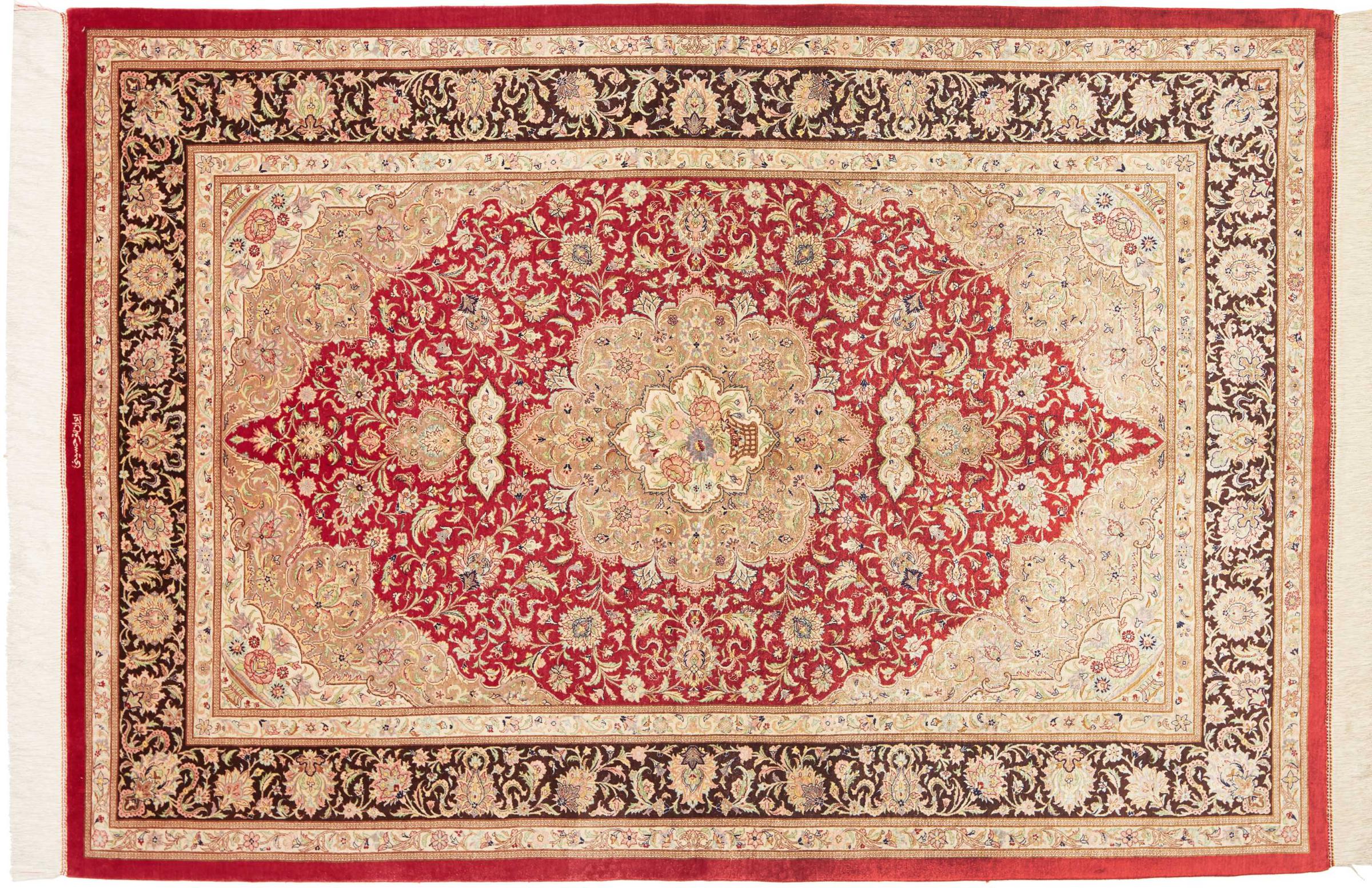 Tæppe-nr.: 247130007070781 Størrelse: 198x136 cm Tykkelse: ca. 3 mm Knuder: 1 000 000 / m² Forarbejdelse: Knyttet i hånden Luv: Silke Kæde: Silke Oprindelse: Persien / Iran Alder: Ny Vægt: ca. 5 kg Antal på lager: Unik - Kun 1 tilbage på lager