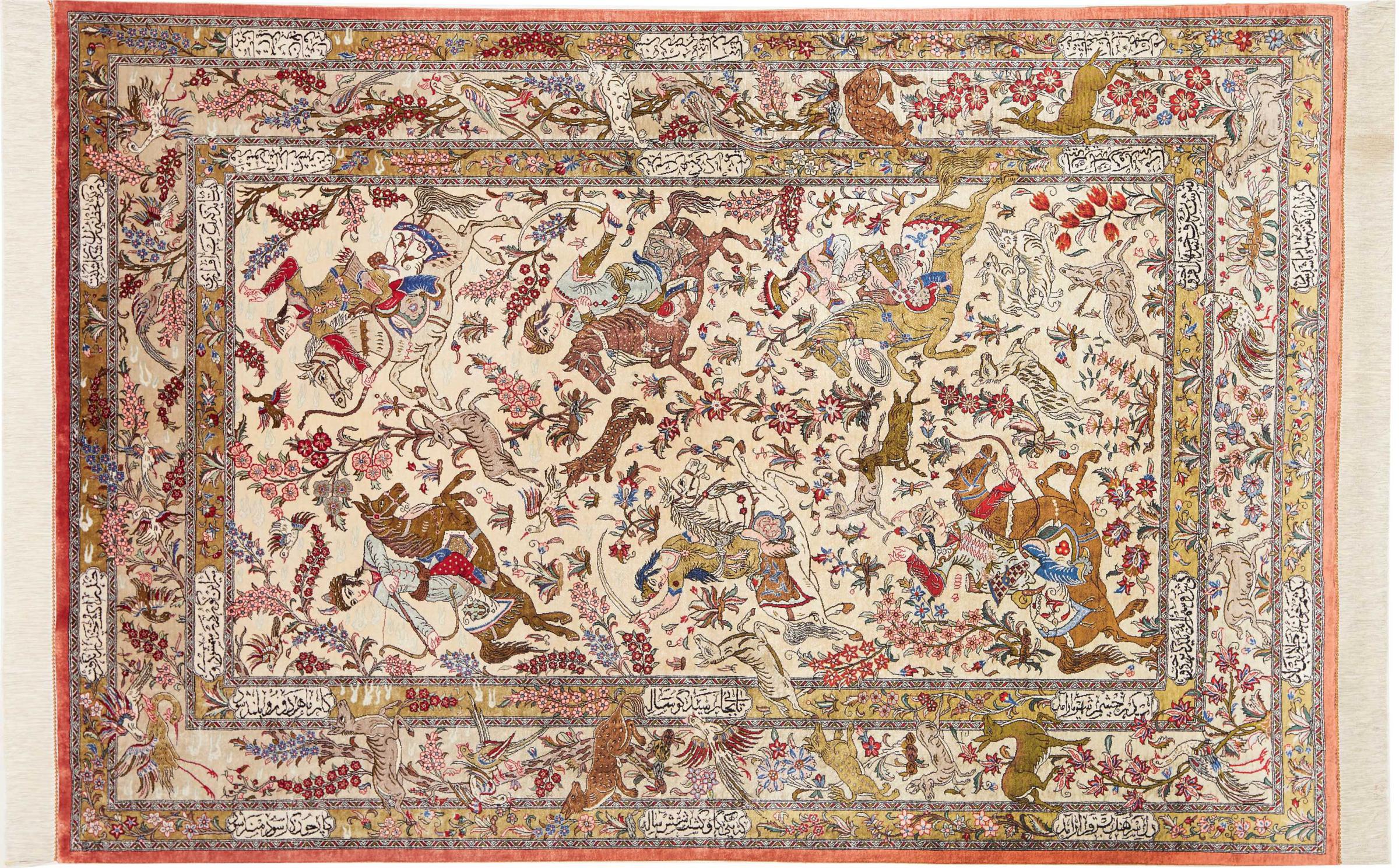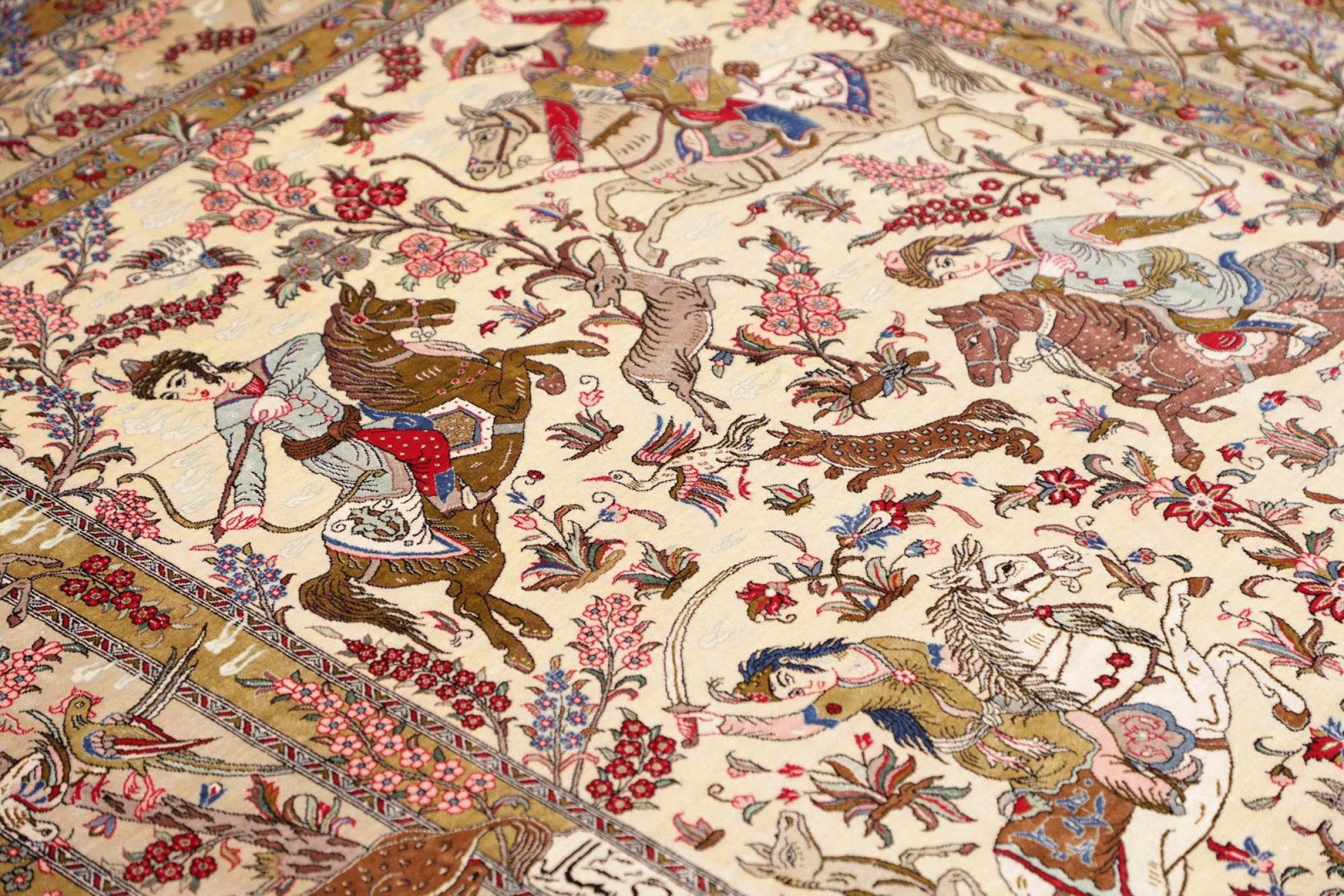 Tæppe-nr.: 247147004404371 Størrelse: 199x131 cm Tykkelse: ca. 3 mm Knuder: 1 000 000 / m² Forarbejdelse: Knyttet i hånden Luv: Silke Kæde: Silke Oprindelse: Persien / Iran Alder: Ny Vægt: ca. 5 kg Antal på lager: Unik - Kun 1 tilbage på lager