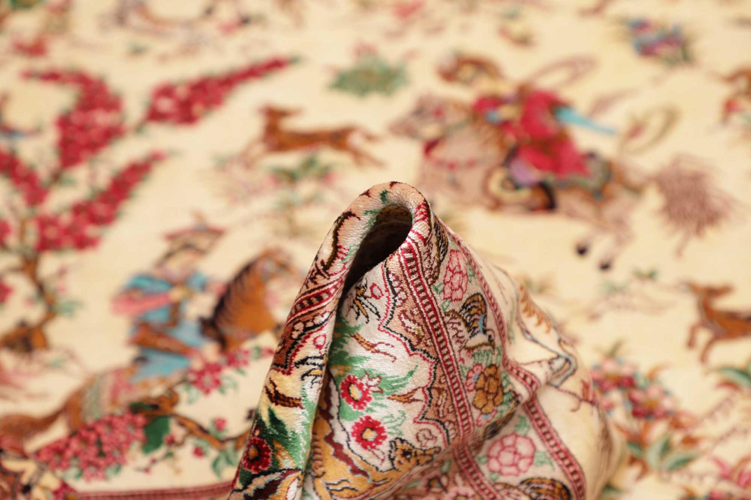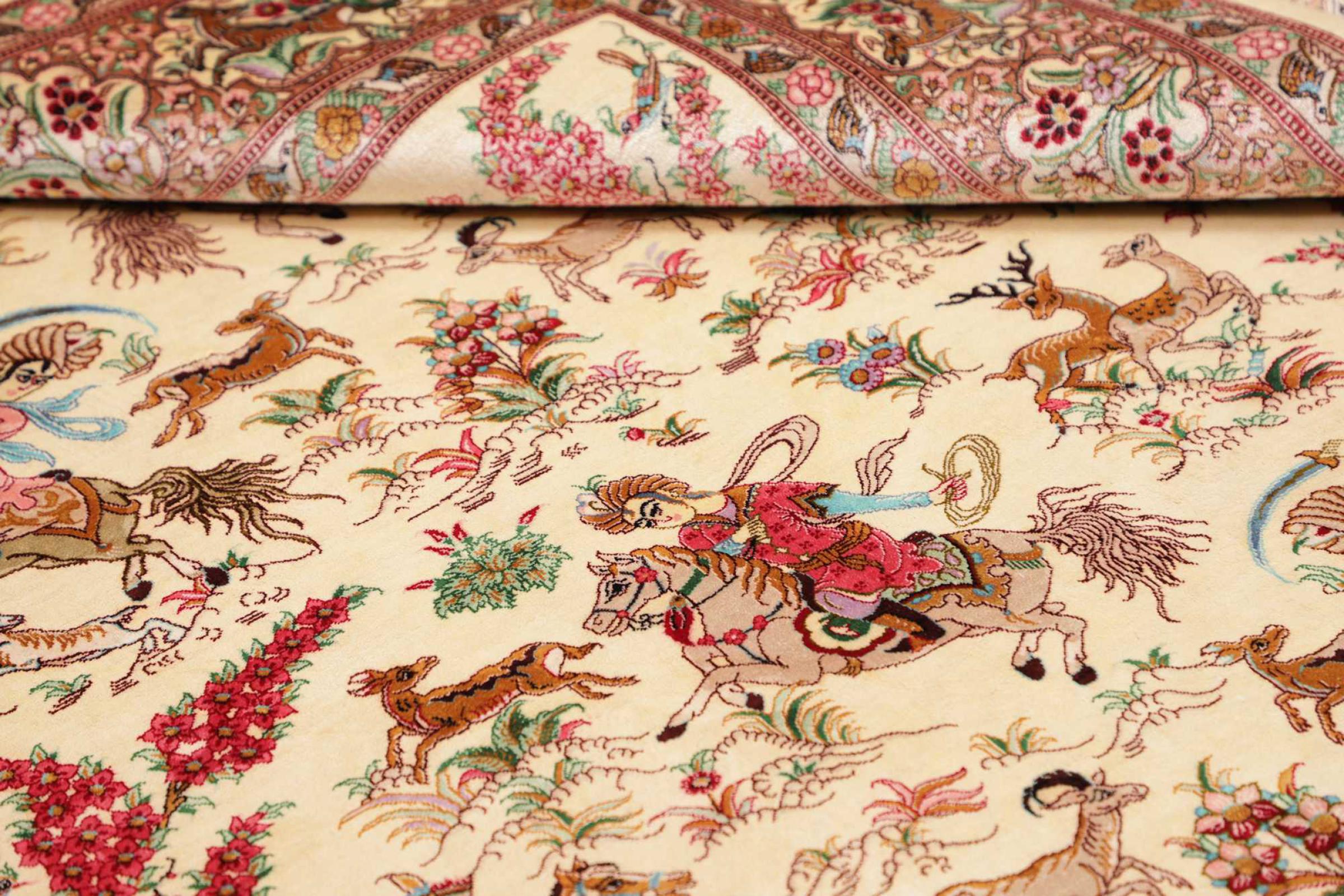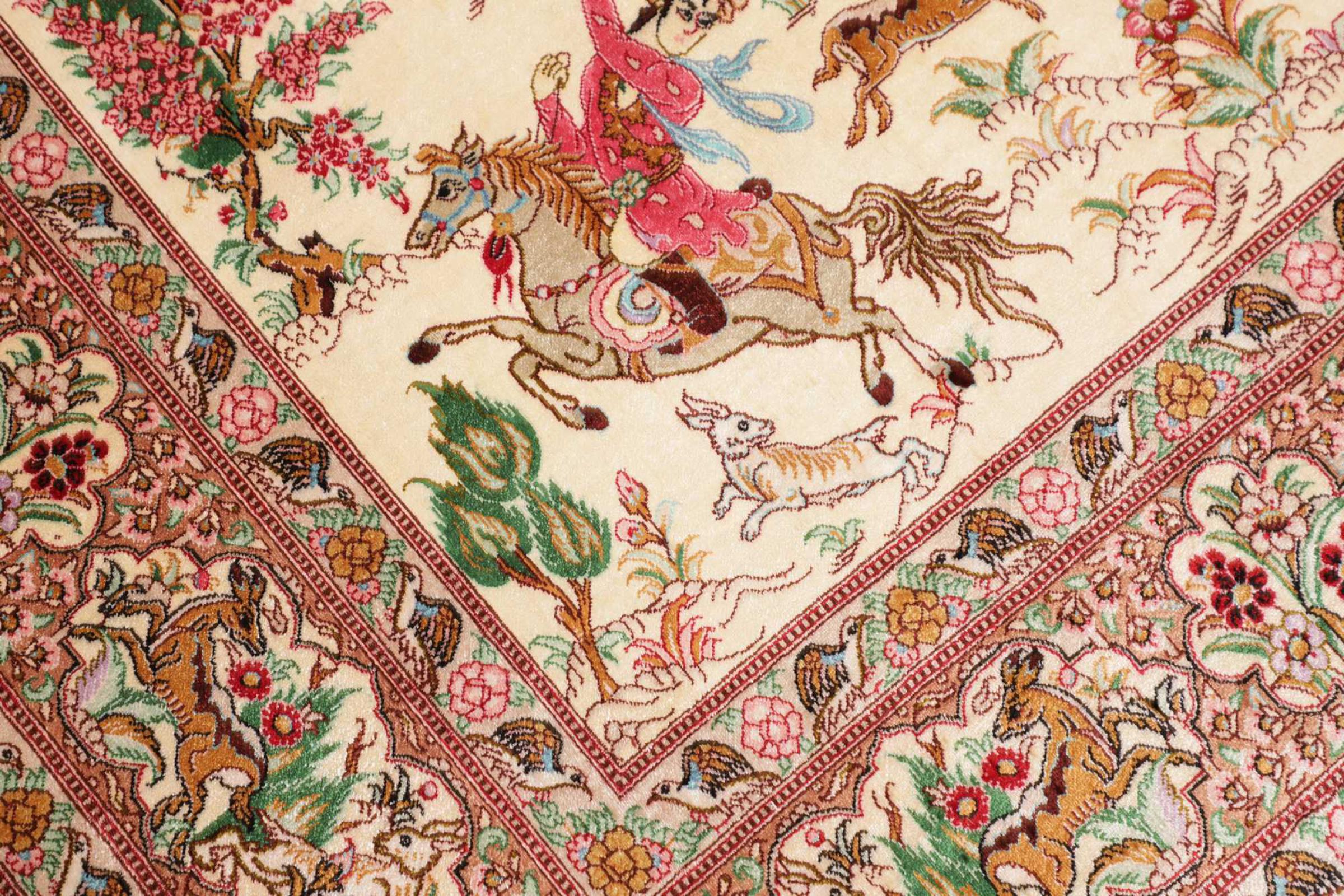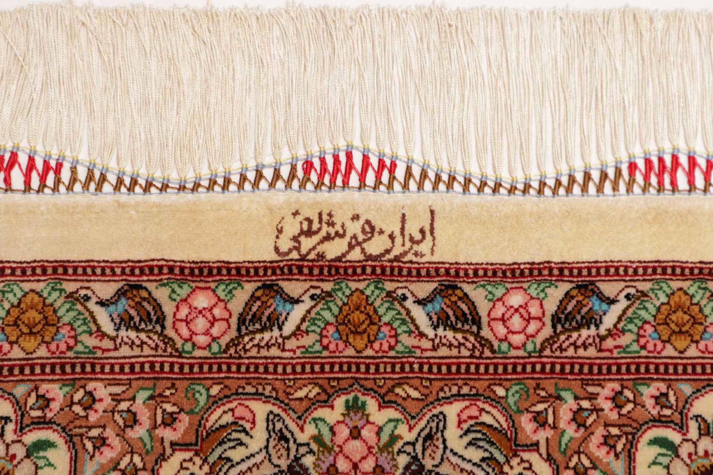 Dette Qum silketæppe er den rene luksus. Mønster og naturlige silke taler for sig selv. Orienten i perfektion til dit hjem. En silke tæppe fra Ghom opfylder endda ønsker fra elskere af den persisk tæppe kunst. Denne persisk tæppe er en blikfang og vil blive vist i ny pragt "hans" værelse.