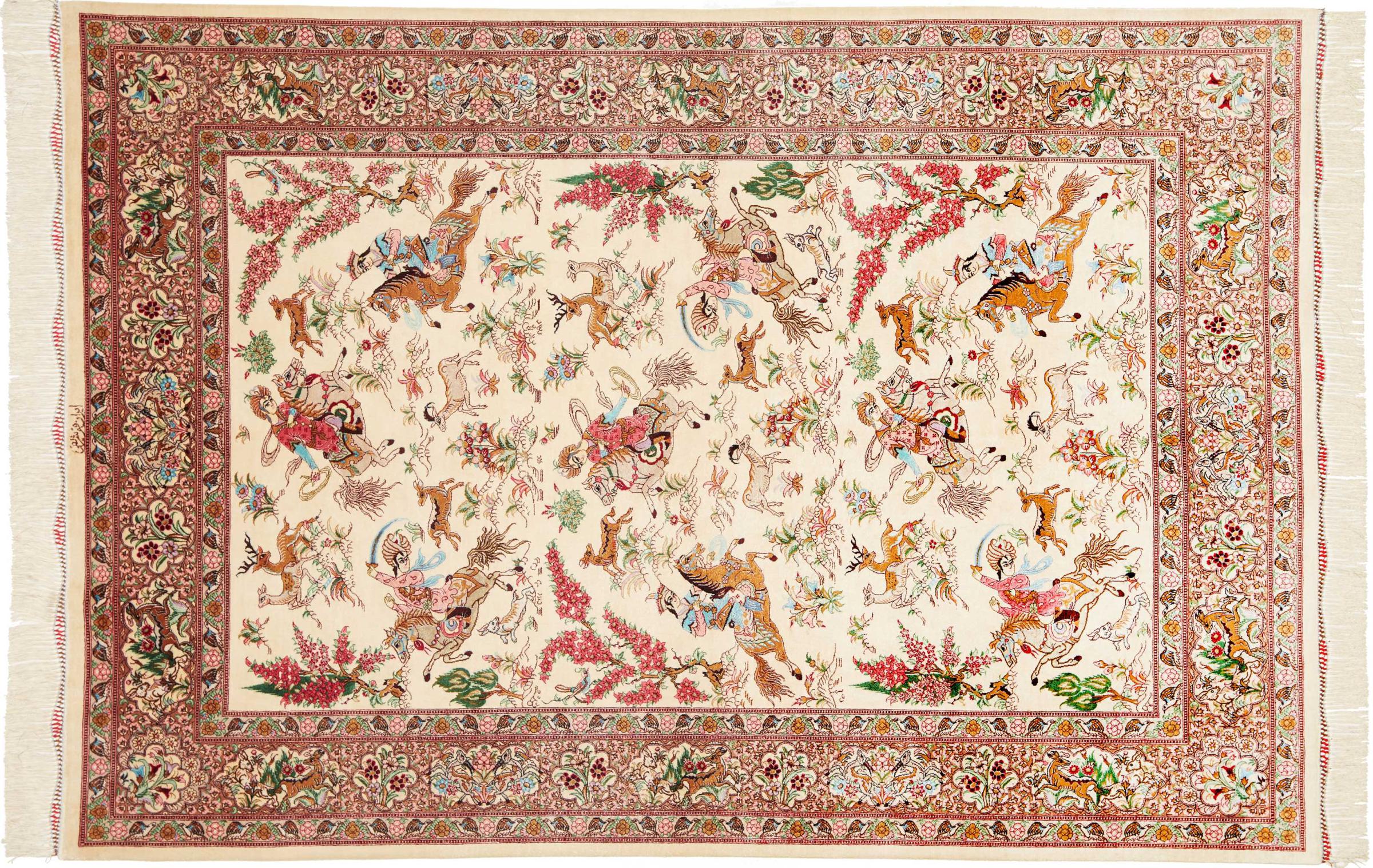 Tæppe-nr.: 247046002808317 Størrelse: 199x134 cm Tykkelse: ca. 3 mm Knuder: 1 000 000 / m² Forarbejdelse: Knyttet i hånden Luv: Silke Kæde: Silke Oprindelse: Persien / Iran Alder: Ny Vægt: ca. 5 kg Antal på lager: Unik - Kun 1 tilbage på lager