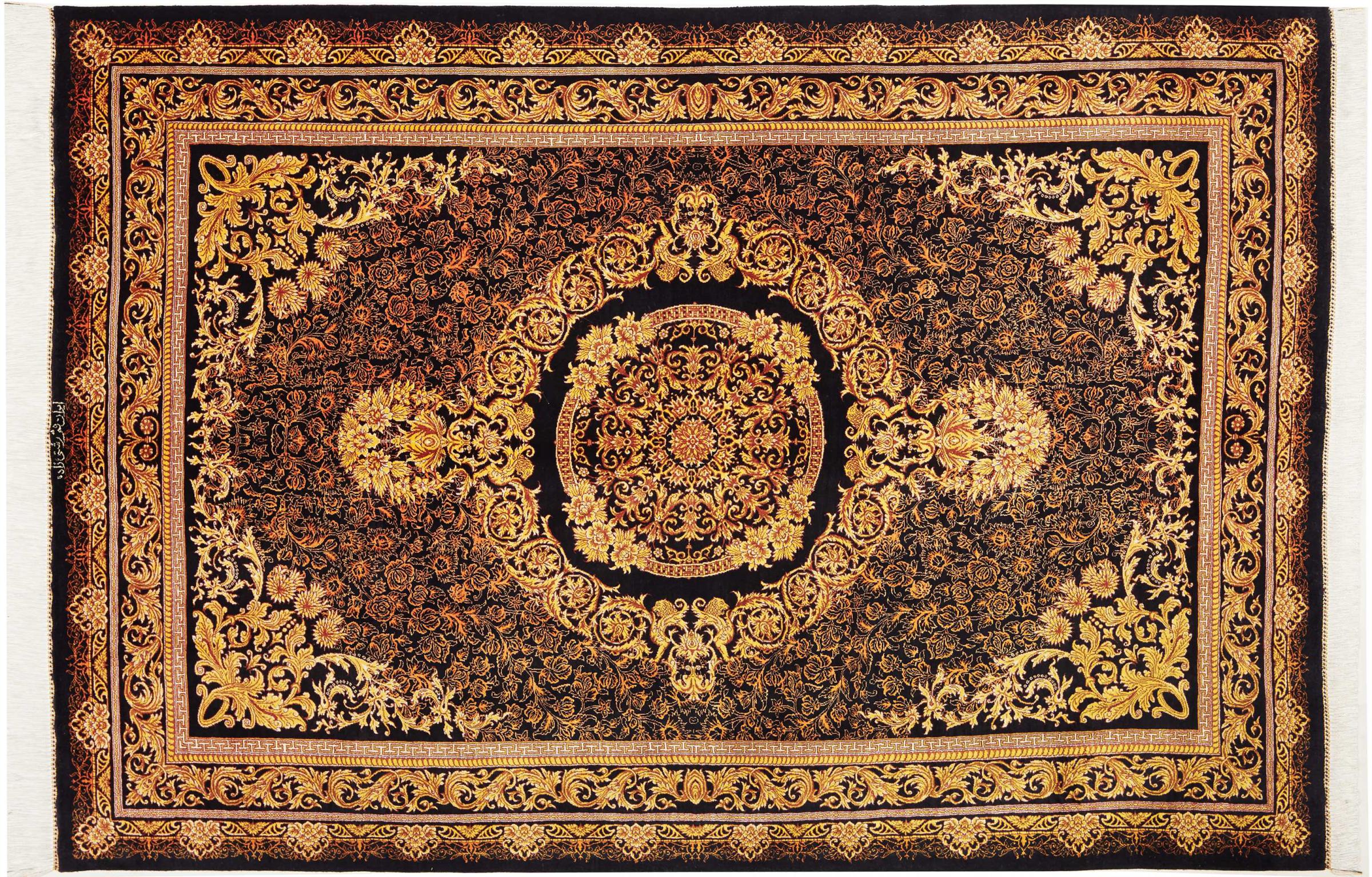 Tæppe-nr.: 252714001382180 Størrelse: 199x136 cm Tykkelse: ca. 3 mm Knuder: 1 000 000 / m² Forarbejdelse: Knyttet i hånden Luv: Silke Kæde: Silke Oprindelse: Persien / Iran Alder: Ny Vægt: ca. 5 kg Antal på lager: Unik - Kun 1 tilbage på lager