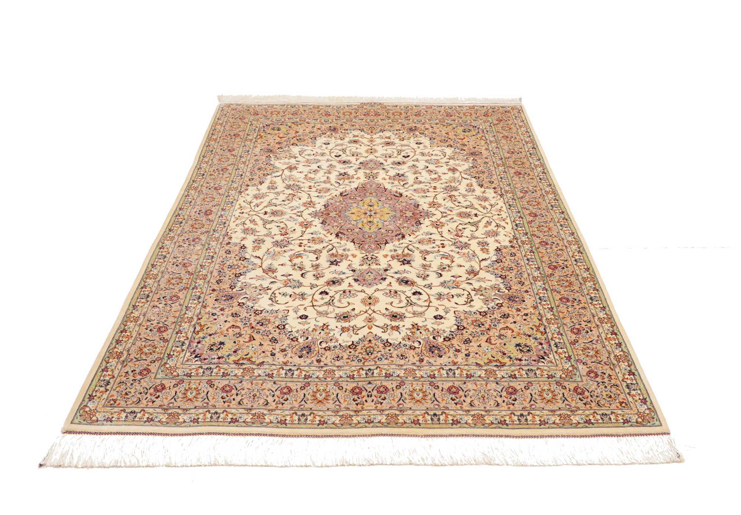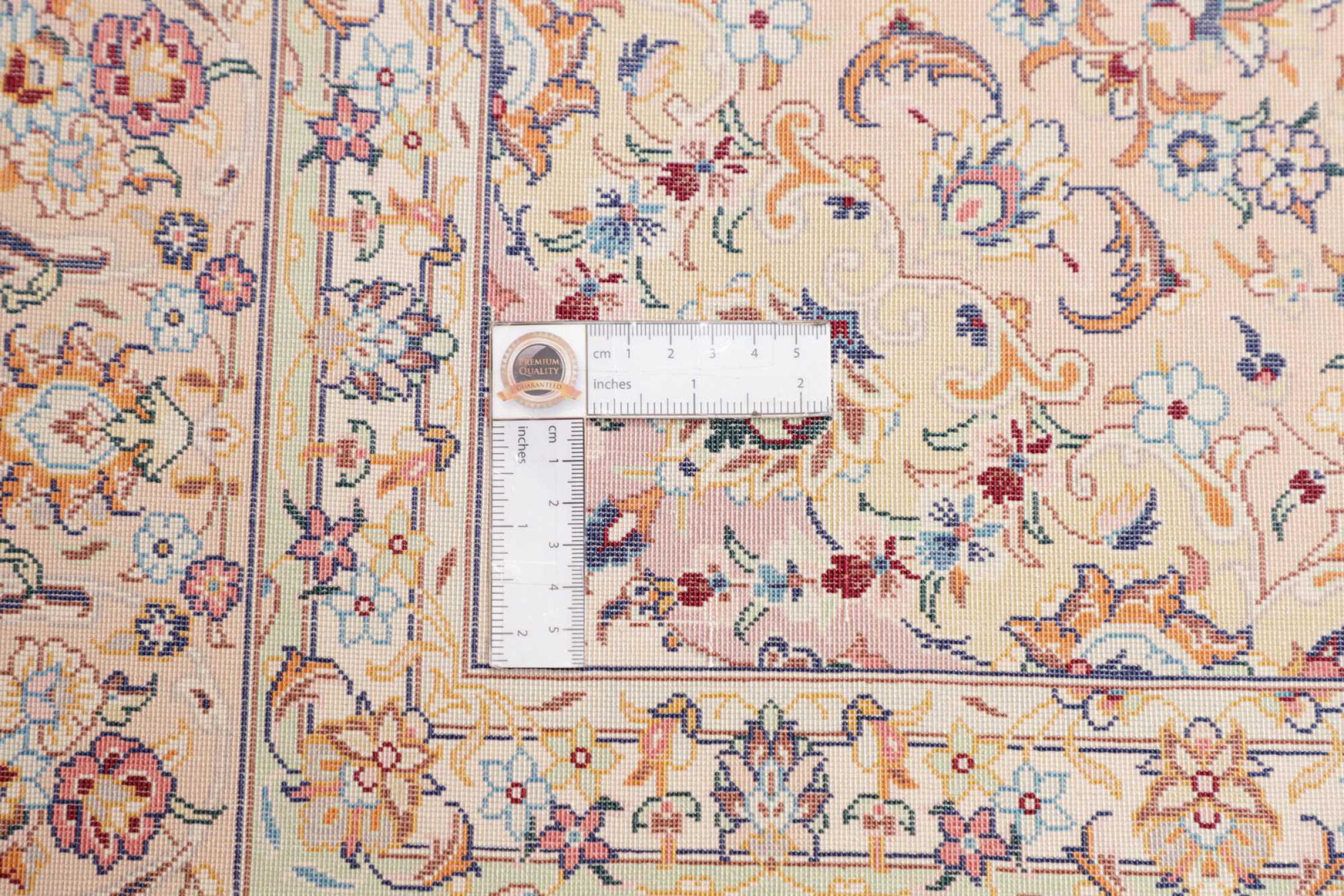 Tæppe-nr.: 260684001699768 Størrelse: 201x139 cm Tykkelse: ca. 3 mm Knuder: 900 000 / m² Forarbejdelse: Knyttet i hånden Luv: Silke Kæde: Silke Oprindelse: Persien / Iran Alder: Ny Vægt: ca. 6 kg Antal på lager: Unik - Kun 1 tilbage på lager
