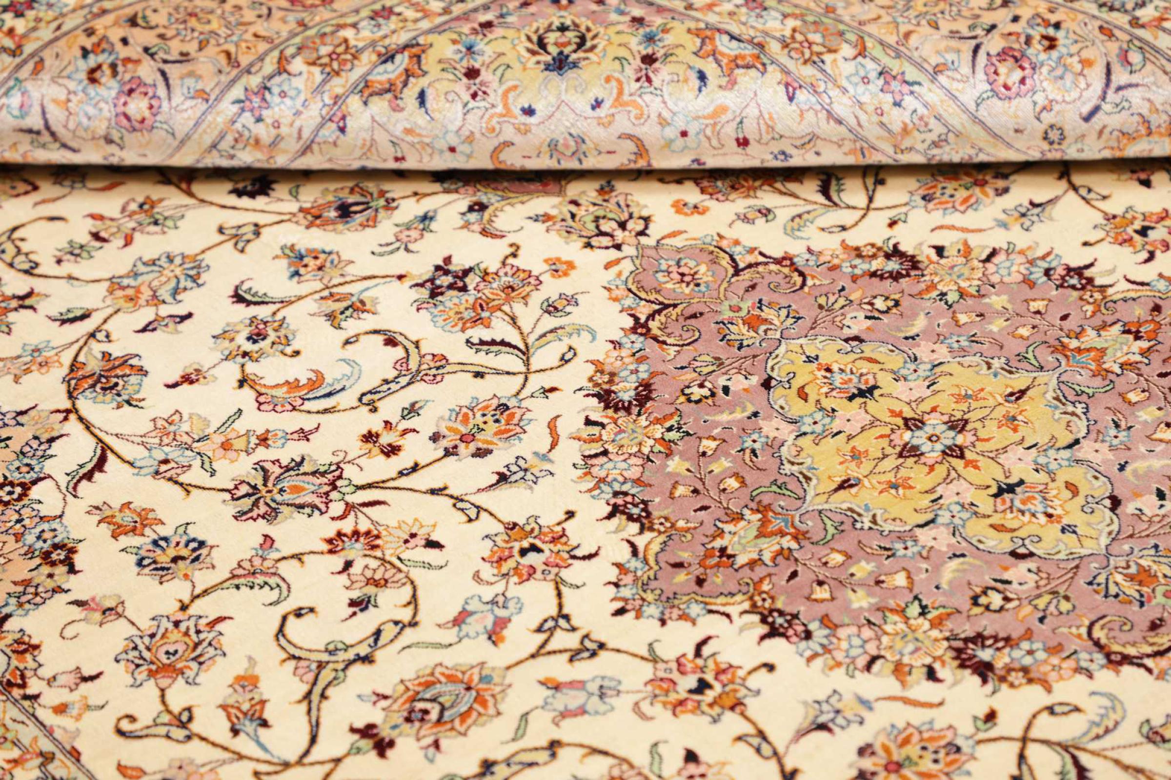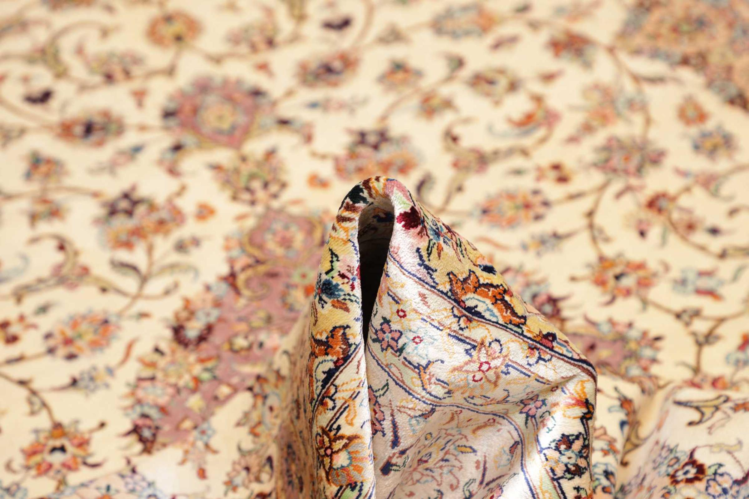 Dette Qum silketæppe er den rene luksus. Mønster og naturlige silke taler for sig selv. Orienten i perfektion til dit hjem. En silke tæppe fra Ghom opfylder endda ønsker fra elskere af den persisk tæppe kunst. Denne persisk tæppe er en blikfang og vil blive vist i ny pragt "hans" værelse.