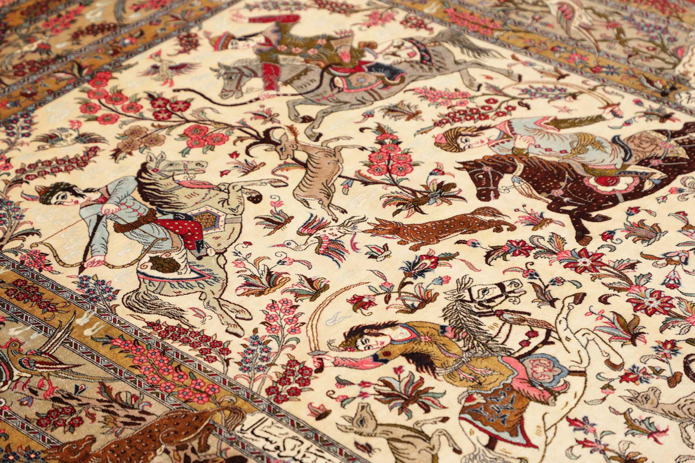 Tæppe-nr.: 247063003491512 Størrelse: 204x131 cm Tykkelse: ca. 3 mm Knuder: 1 000 000 / m² Forarbejdelse: Knyttet i hånden Luv: Silke Kæde: Silke Oprindelse: Persien / Iran Alder: Ny Vægt: ca. 5 kg Antal på lager: Unik - Kun 1 tilbage på lager