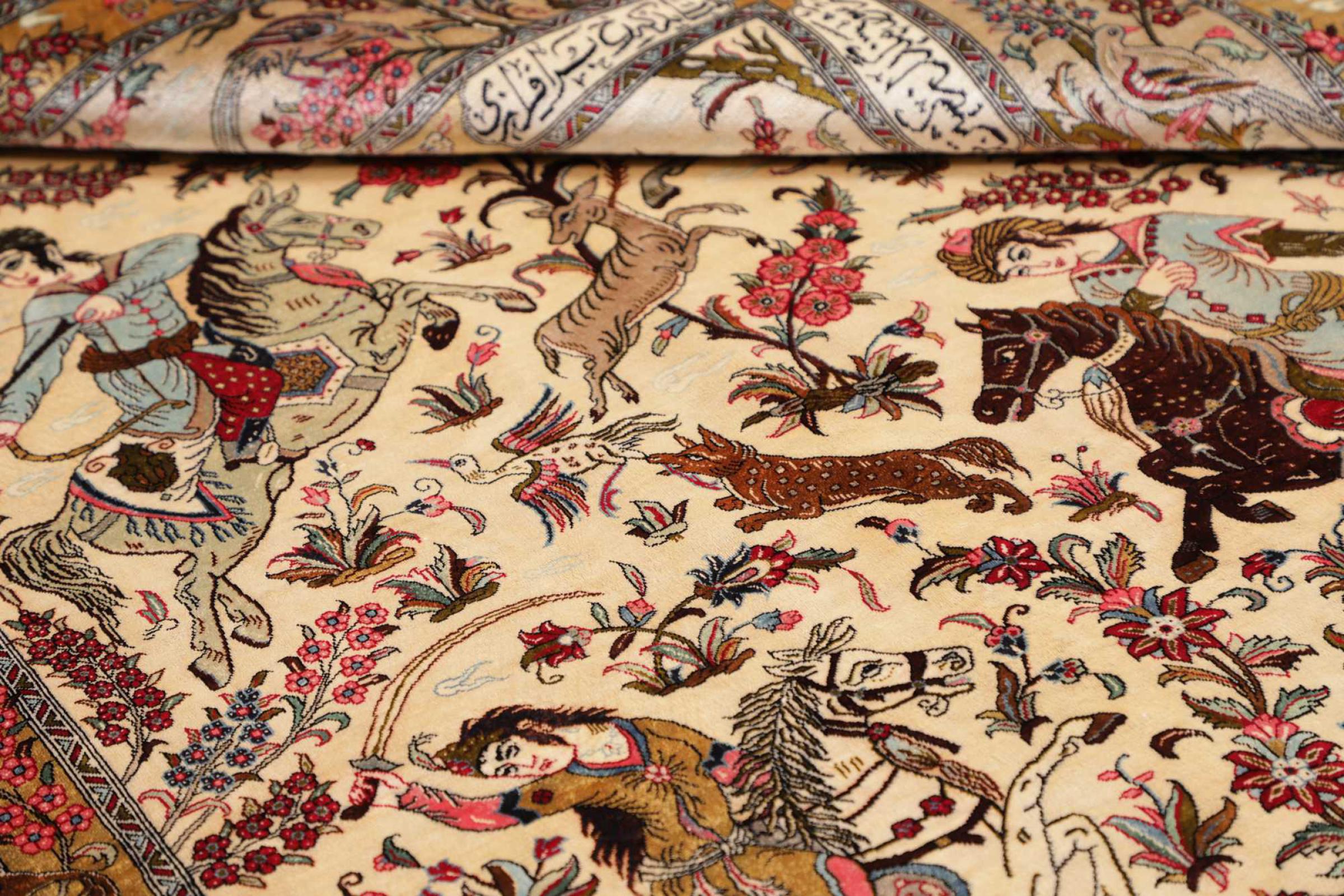 Dette Qum silketæppe er den rene luksus. Mønster og naturlige silke taler for sig selv. Orienten i perfektion til dit hjem. En silke tæppe fra Ghom opfylder endda ønsker fra elskere af den persisk tæppe kunst. Denne persisk tæppe er en blikfang og vil blive vist i ny pragt "hans" værelse.