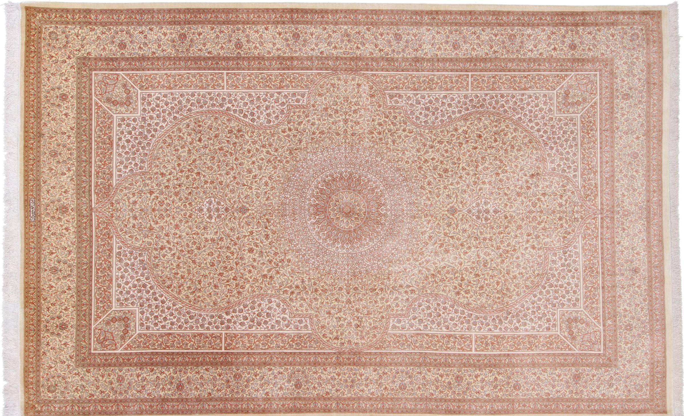 Tæppe-nr.: 35268004101511 Størrelse: 306x201 cm Tykkelse: ca. 3 mm Knuder: 1 000 000 / m² Forarbejdelse: Knyttet i hånden Luv: Silke Kæde: Silke Oprindelse: Persien / Iran Alder: Ny Vægt: ca. 12 kg Antal på lager: Unik - Kun 1 tilbage på lager