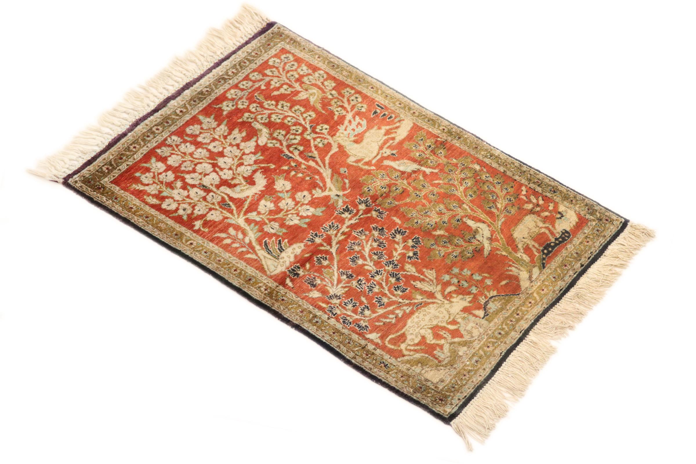 Dette Qum silketæppe er den rene luksus. Mønster og naturlige silke taler for sig selv. Orienten i perfektion til dit hjem. En silke tæppe fra Ghom opfylder endda ønsker fra elskere af den persisk tæppe kunst. Denne persisk tæppe er en blikfang og vil blive vist i ny pragt "hans" værelse.