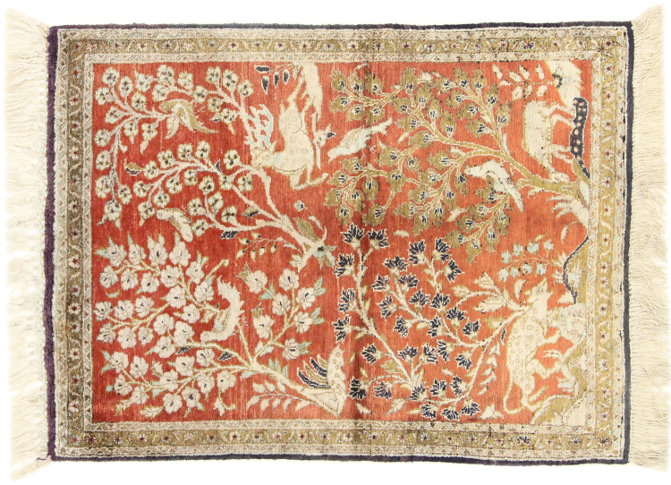 Dette tæppe kommer fra Iran (tidligere Persien) og er sandsynligvis det højeste ry blandt alle håndknyttede tæpper som persisk tæppe. Ingen region ser tilbage på en sammenlignelig lang tradition inden for vævning af tæpper end Iran. Sådan kommer de fineste og mest detaljerede tæpper her. Den persiske knudees robusthed, holdbarhed og kvalitet er uovertruffen i dag. Persiske tæpper er normalt opkaldt efter din oprindelsesregion. Så både et Nain, et Ghom og et Isfahan-tæppe kommer fra byen med samme navn i Iran.