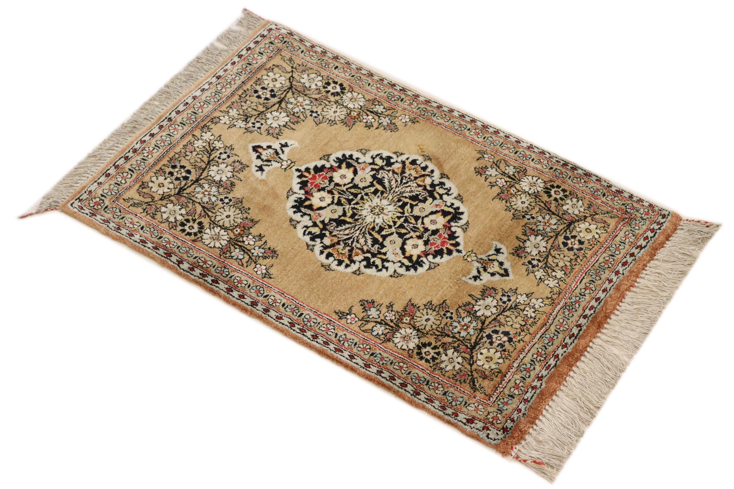 Dette Qum silketæppe er den rene luksus. Mønster og naturlige silke taler for sig selv. Orienten i perfektion til dit hjem. En silke tæppe fra Ghom opfylder endda ønsker fra elskere af den persisk tæppe kunst. Denne persisk tæppe er en blikfang og vil blive vist i ny pragt "hans" værelse.