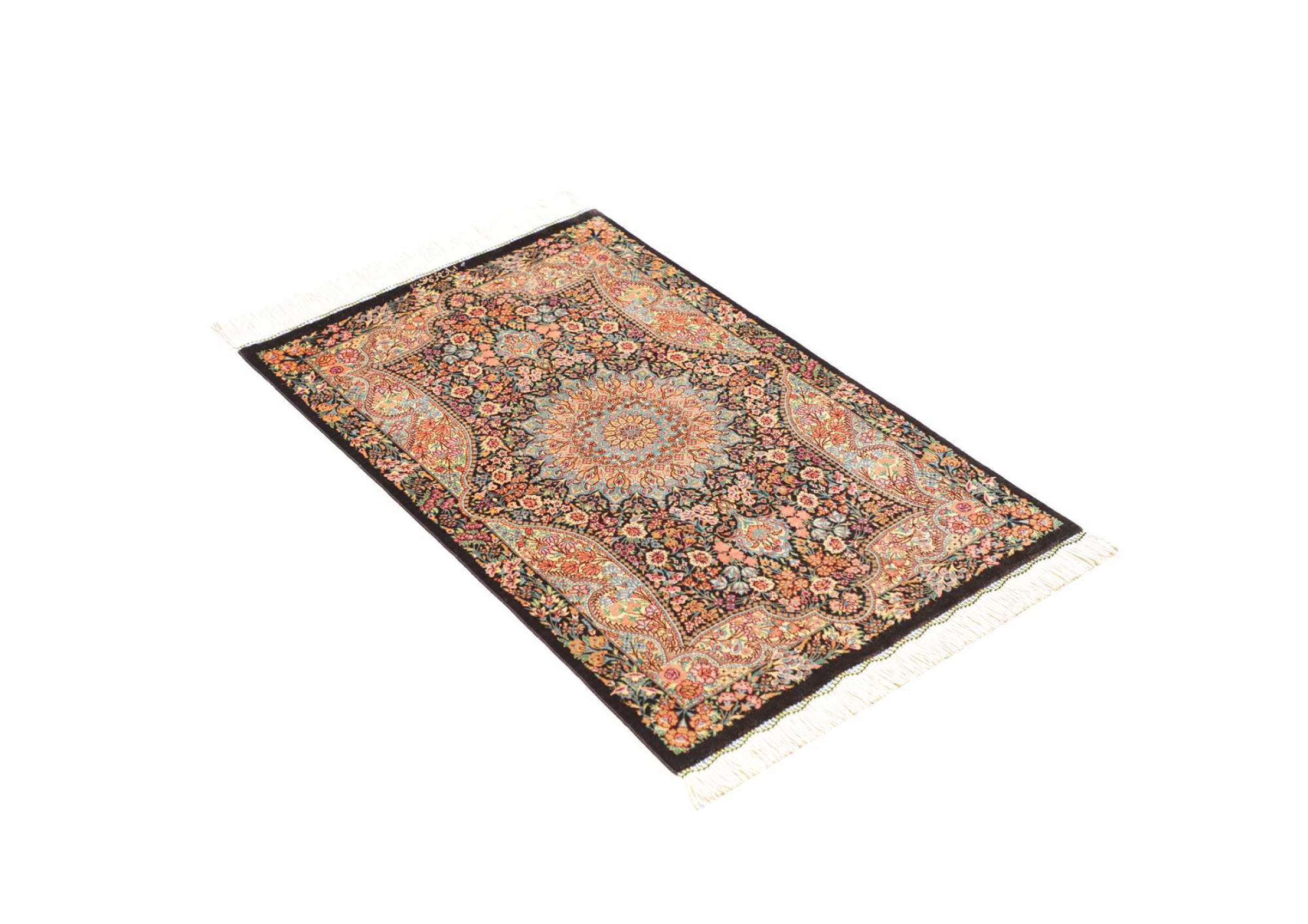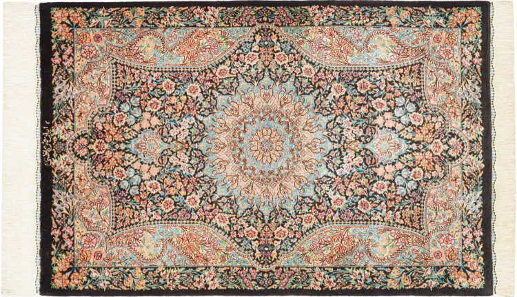 Tæppe-nr.: 247172001832543 Størrelse: 91x57 cm Tykkelse: ca. 3 mm Knuder: 1 000 000 / m² Forarbejdelse: Knyttet i hånden Luv: Silke Kæde: Silke Oprindelse: Persien / Iran Alder: Ny Vægt: ca. 1 kg Antal på lager: Unik - Kun 1 tilbage på lager
