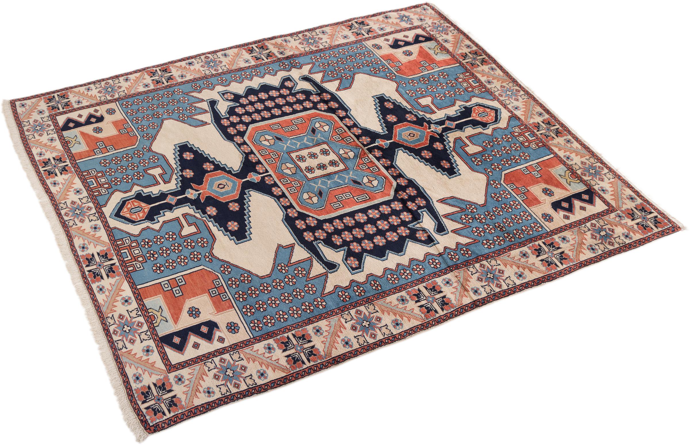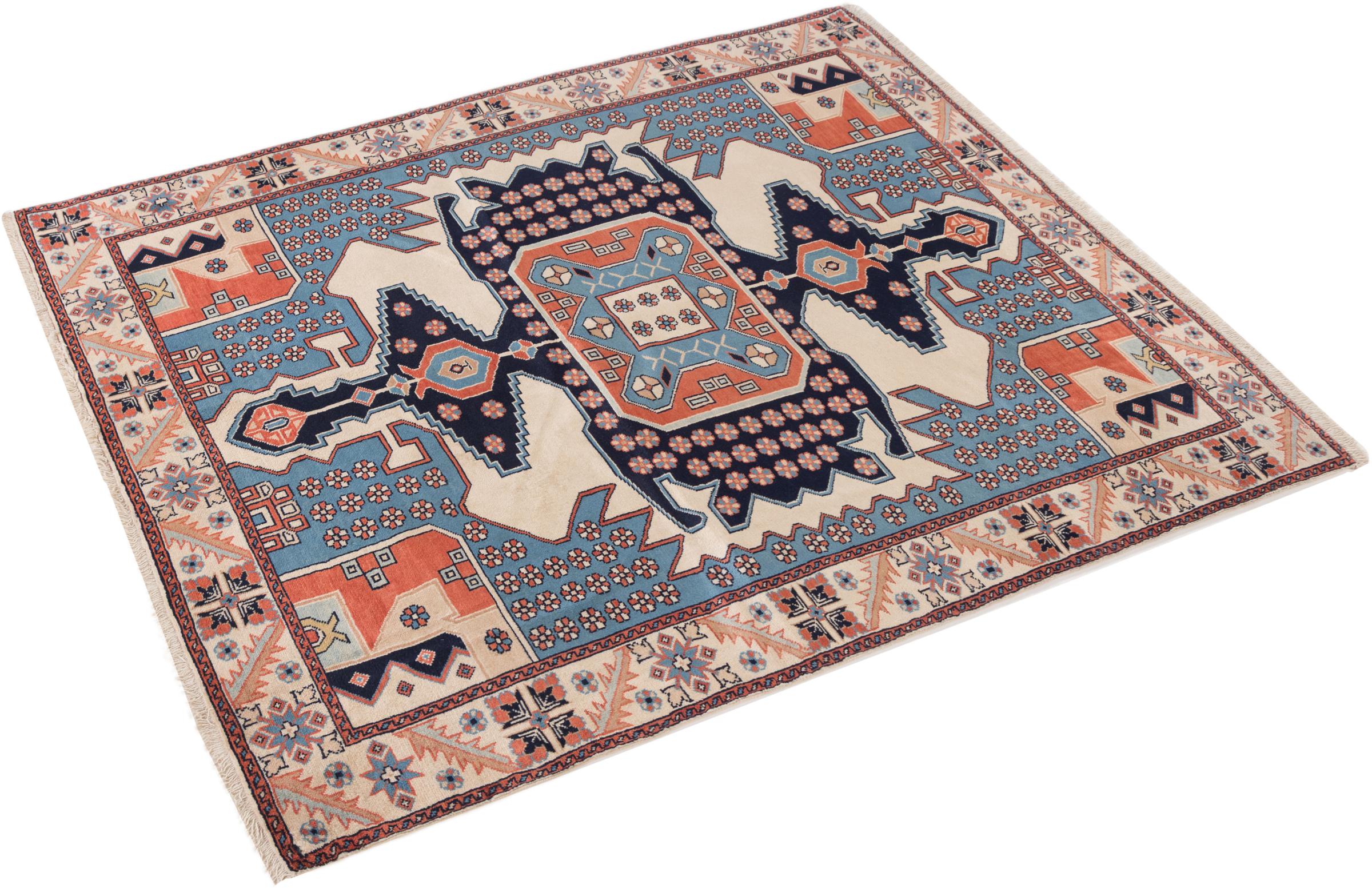 Dette håndknyttede Gutschan er vidnesbyrd for kurdisk tæppe tradition. Dens smukke farver smigrer ethvert miljø. Dyk ned i den kurdiske kultur og åbne dit hjem til en helt ny verden ved hjælp af dette håndknyttede persiske tæppe.