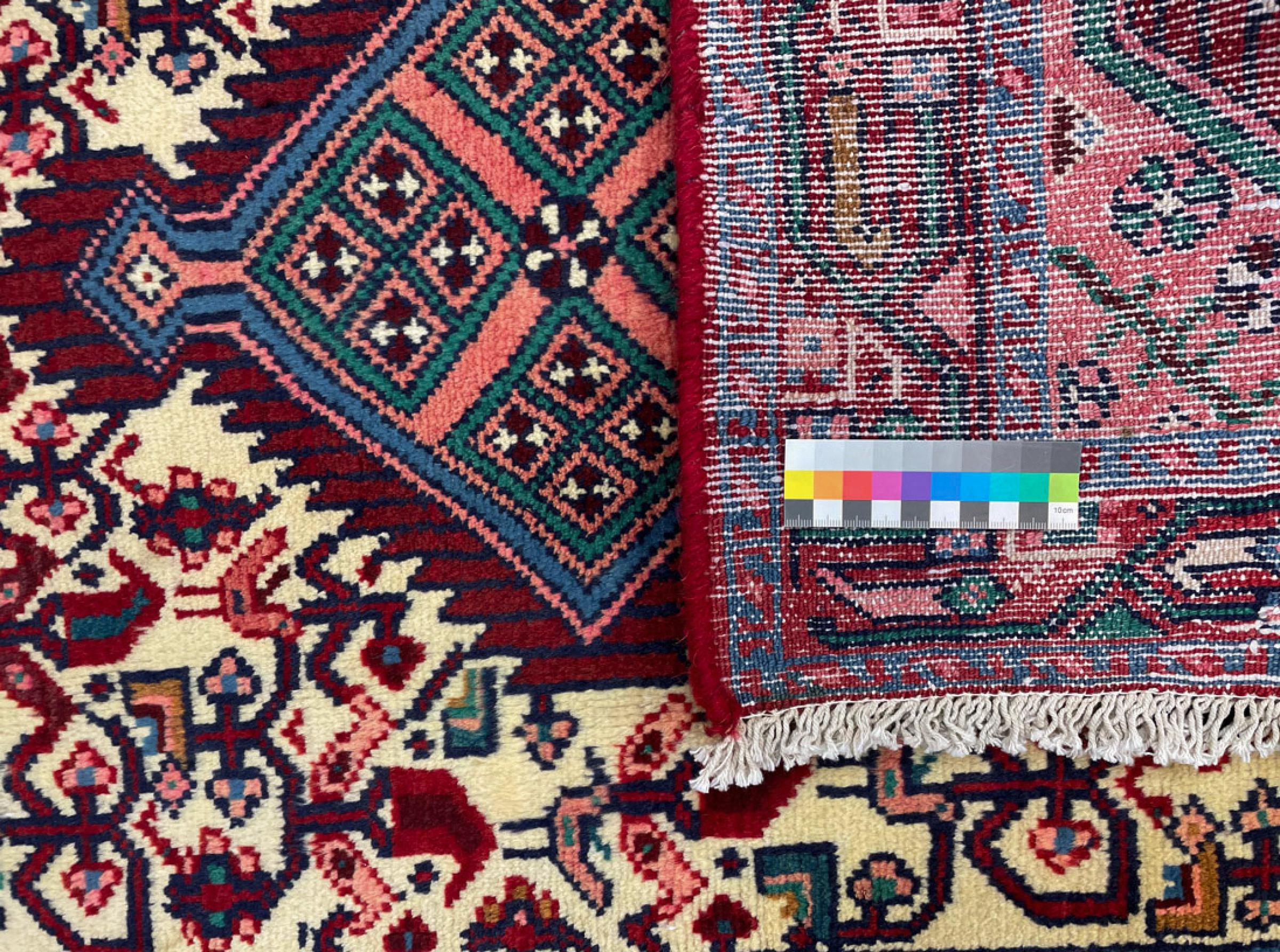 Dette Hamadan-tæppe er ikke efterspurgt i nye indretningskoncepter for ingenting. Det kombinerer en uovertruffen pris med exceptionel kvalitet. På grund af de stærke garner, der bruges i produktionen af Hamadan-tæpper, er dette persiske tæppe særligt holdbart. Det er håndknyttet i byen Hamadan. De ofte geometriske mønstre og ornamenter er tidløse og derfor ekstremt populære i skandinavisk interiør. De dristige farver bringer hygge og varme til dit rum.