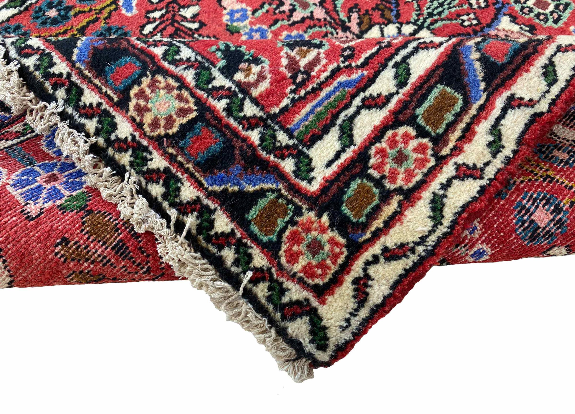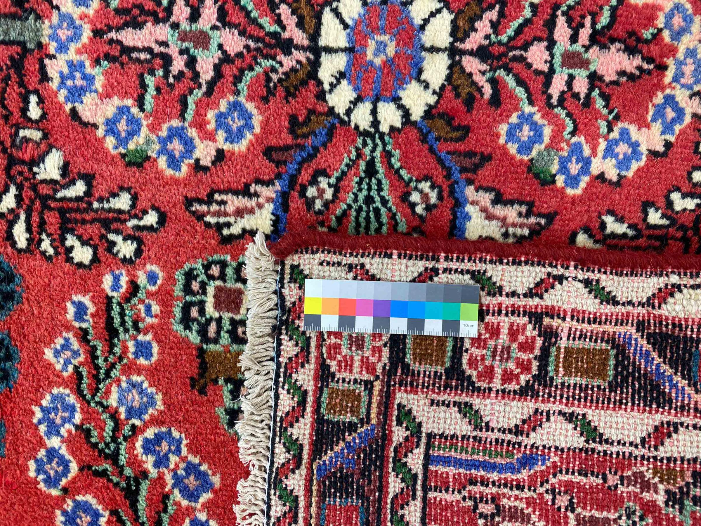 Dette Hamadan-tæppe er ikke efterspurgt i nye indretningskoncepter for ingenting. Det kombinerer en uovertruffen pris med exceptionel kvalitet. På grund af de stærke garner, der bruges i produktionen af Hamadan-tæpper, er dette persiske tæppe særligt holdbart. Det er håndknyttet i byen Hamadan. De ofte geometriske mønstre og ornamenter er tidløse og derfor ekstremt populære i skandinavisk interiør. De dristige farver bringer hygge og varme til dit rum.
